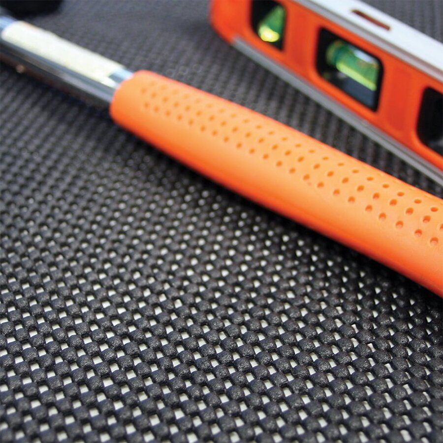 GripSafe je ochranná podložka určená pro pracovní stoly, police. Tato přizpůsobivá neklouzavá podložka chrání jak nástroje, tak police nebo pracovní stoly. Pomocí této podložky udržíte položky na pracovním stole na místě, aniž byste potřebovali stojany nebo svorky. Podložka se může umístit do šuplíků, aby zabránila pohybu nástrojů. Může se použít i na palubních deskách vozidel, aby se zabránilo pohybu při přepravě.