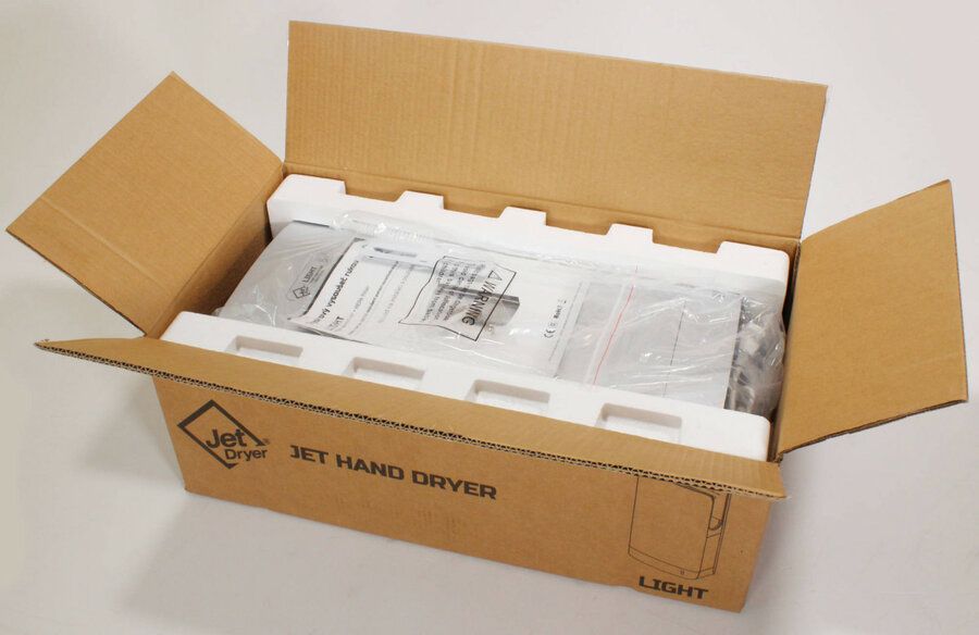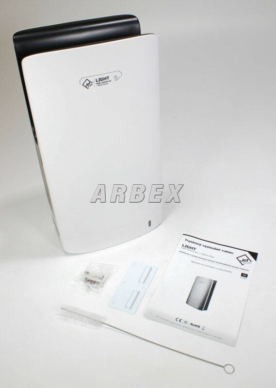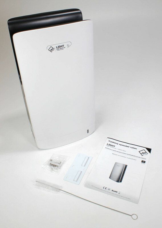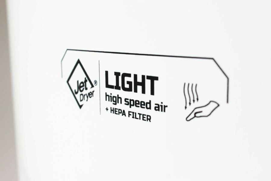 LIGHT je jedním z nejmenších tryskových vysoušečů z řady Jet Dryer. Výška přístroje je pouhých 55,6 cm, šířka 29,6 cm. Vysoušeč je vhodný především do malých koupelen.