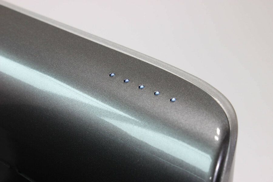 Sušící zóna je osvětlena pomocí LED diod. V přední straně vysoušeče se nachází led dioda skrytá pod podlouhlým průzorem. Modrá barva podsvícení signalizuje, že je vysoušeč připravený k použití.