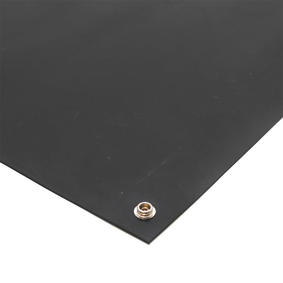 Dvouvrstvá podložka vyrobená z pryže s černým povrchem. Vrchní povrch: 0,5 mm silná antistatická vrstva. Stolní podložka odolná proti pájení s nízkou odrazivostí, ideální pro výrobu a renovaci elektrických součástek. Uzemnění pomocí 10 mm kolíku namontovaného na podložce. Vyhovuje IEC 61340-5-1. Odpor bod-bod (Rp-p): 1.2 x 104 Ohm. Odpor vůči uzemněnému bodu (Rgp): 1,4 x 104 Ohm.