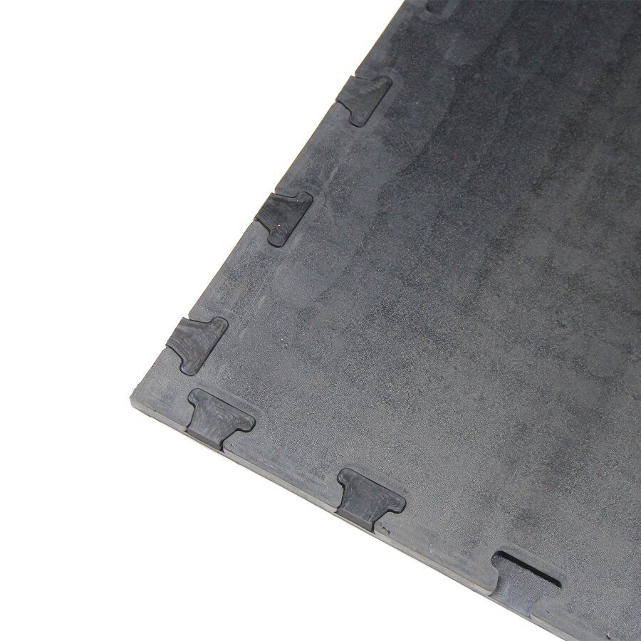 Podlahová deska s krytým spojovacím zámkem je vyrobena z materiálu EPDM o tvrdosti 60°ShA, pevnost gumy 8MPa. Desky jsou určeny pro venkovní i vnitřní použití. Mají vysokou UV odolnost a barevnou stálost.