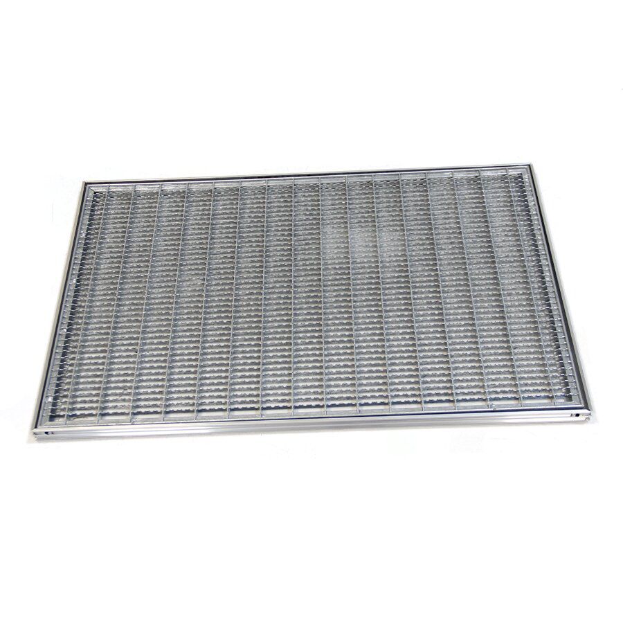 Rám pro zapuštění do podlahy je vyroben z hliníku, který je pevný a odolný vůči korozi, tedy má stejně jako ocelový rošt také velmi dlouhou životnost. Rám je potřeba zapustit do připraveného otvoru v podlaze a vyrovnat stěrkou, tak aby hliníkový profil a stěrka byla v rovině.