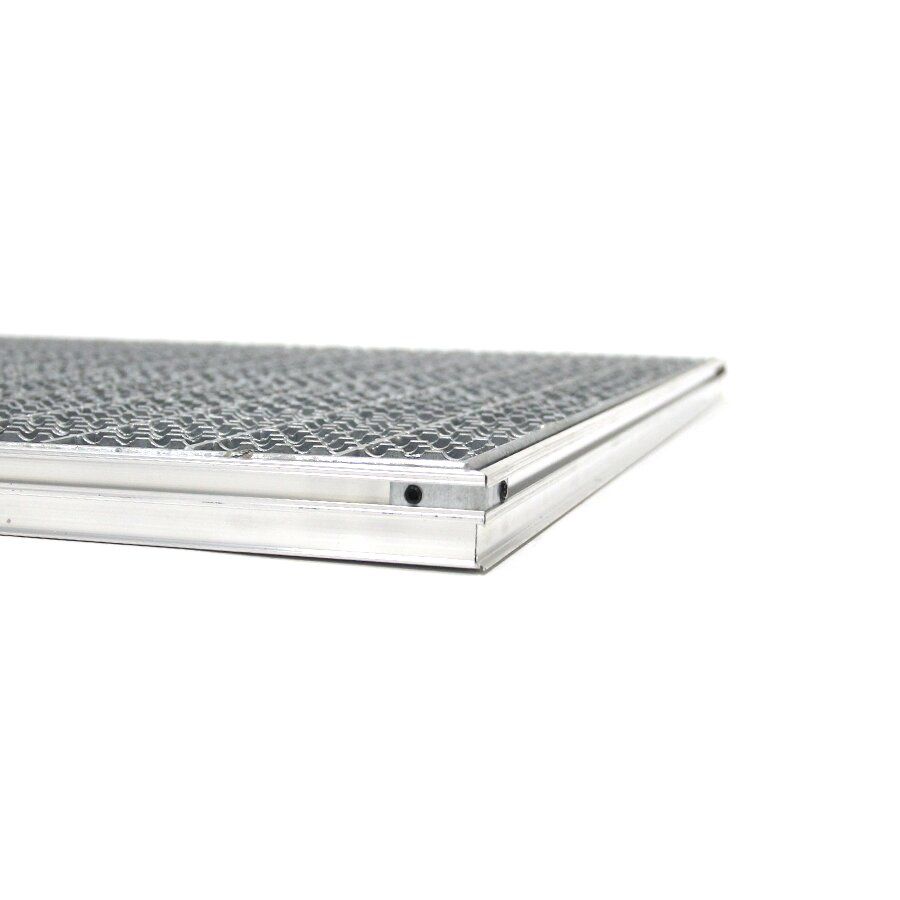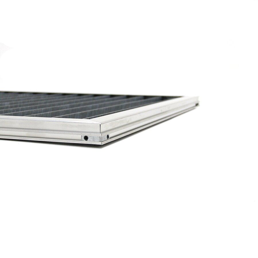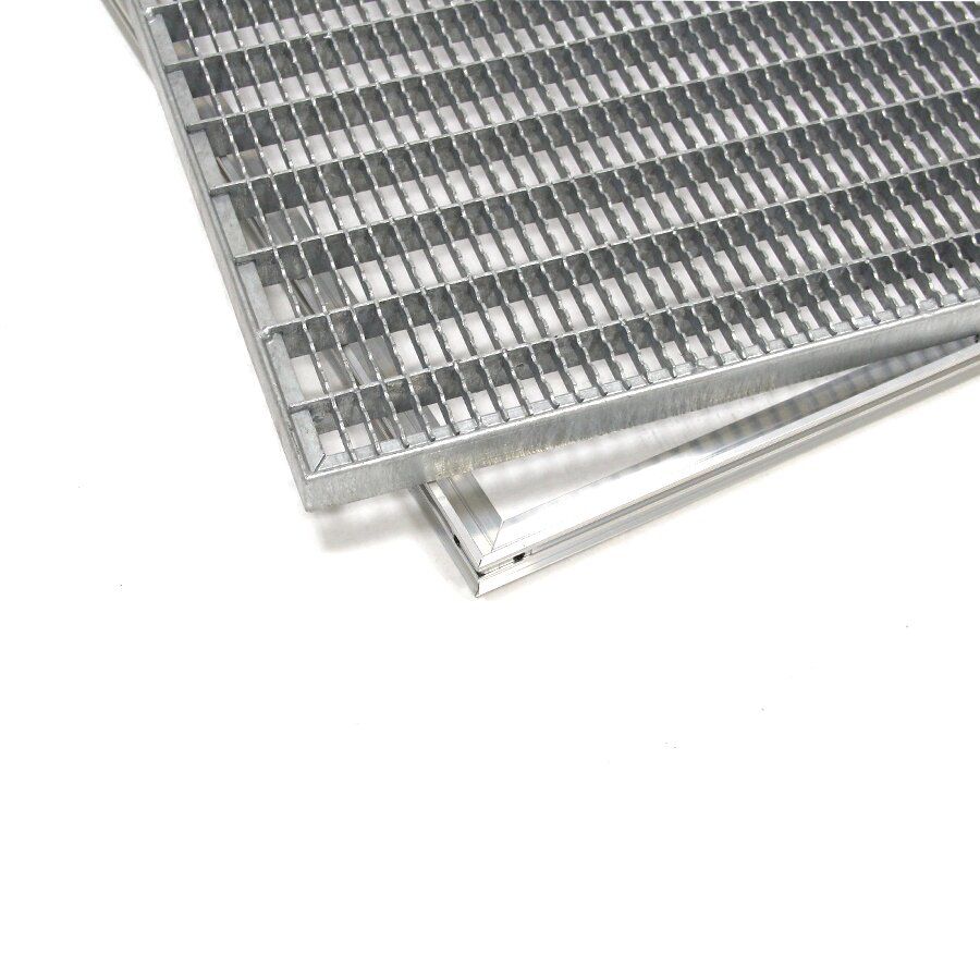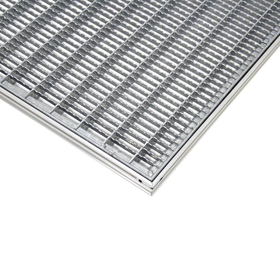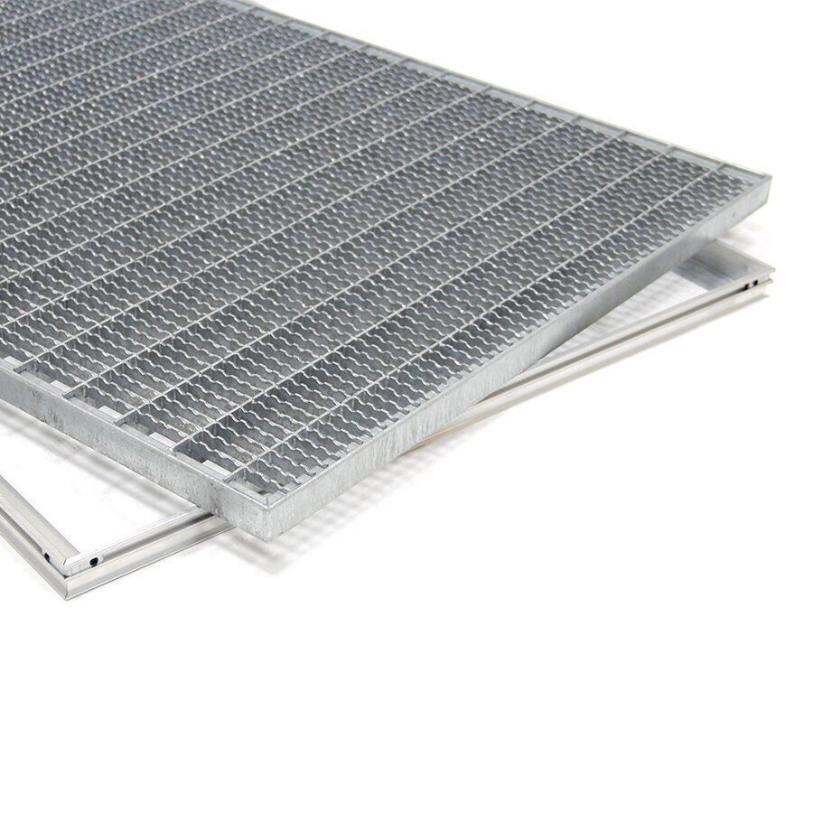 Rám pro zapuštění do podlahy je vyroben z hliníku, který je pevný a odolný vůči korozi, tedy má stejně jako ocelový rošt také velmi dlouhou životnost. Rám je potřeba zapustit do připraveného otvoru v podlaze a vyrovnat stěrkou, tak aby hliníkový profil a stěrka byla v rovině.