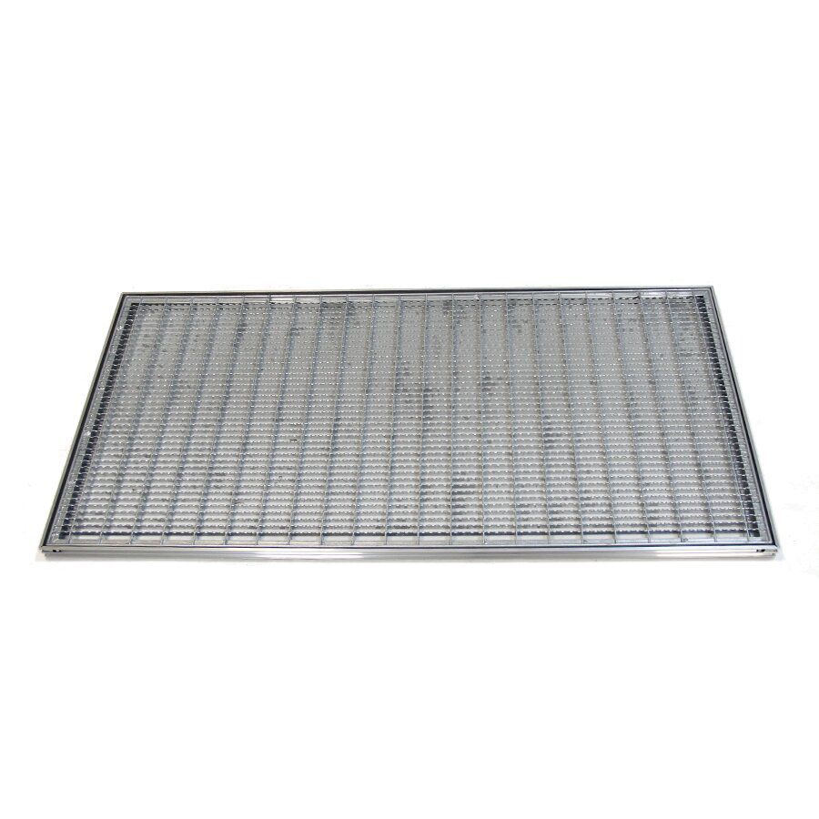 Rám pro zapuštění do podlahy je vyroben z hliníku, který je pevný a odolný vůči korozi, tedy má stejně jako ocelový rošt také velmi dlouhou životnost. Rám je potřeba zapustit do připraveného otvoru v podlaze a vyrovnat stěrkou, tak aby hliníkový profil a stěrka byla v rovině.