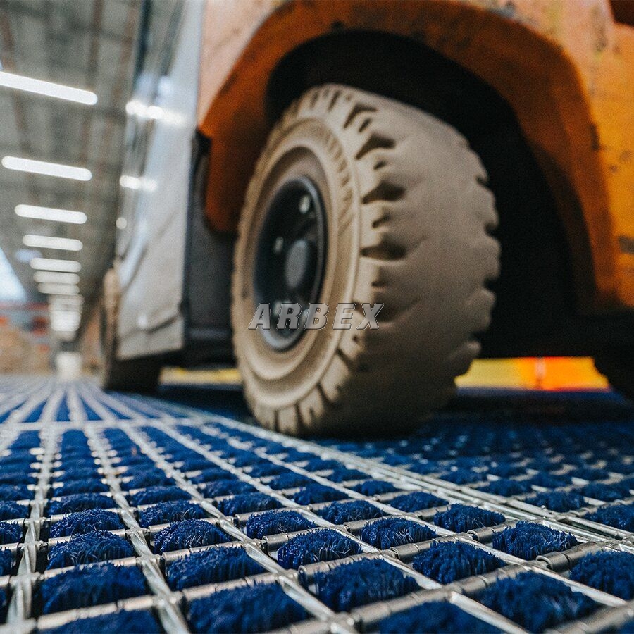 Extra odolné čistící kartáčové vstupní rohože z ocelových podlahových roštů pro vysokozdvižné vozíky FLOMA FLT-PRM představují inovativní přístup k účinnému a efektivnímu čištění kol a pneumatik. Klíčovými rysy je unikátní způsob upevnění čisticích kartáčů a variabilní sada čisticích roštů, která umožňuje optimalizaci čištění.