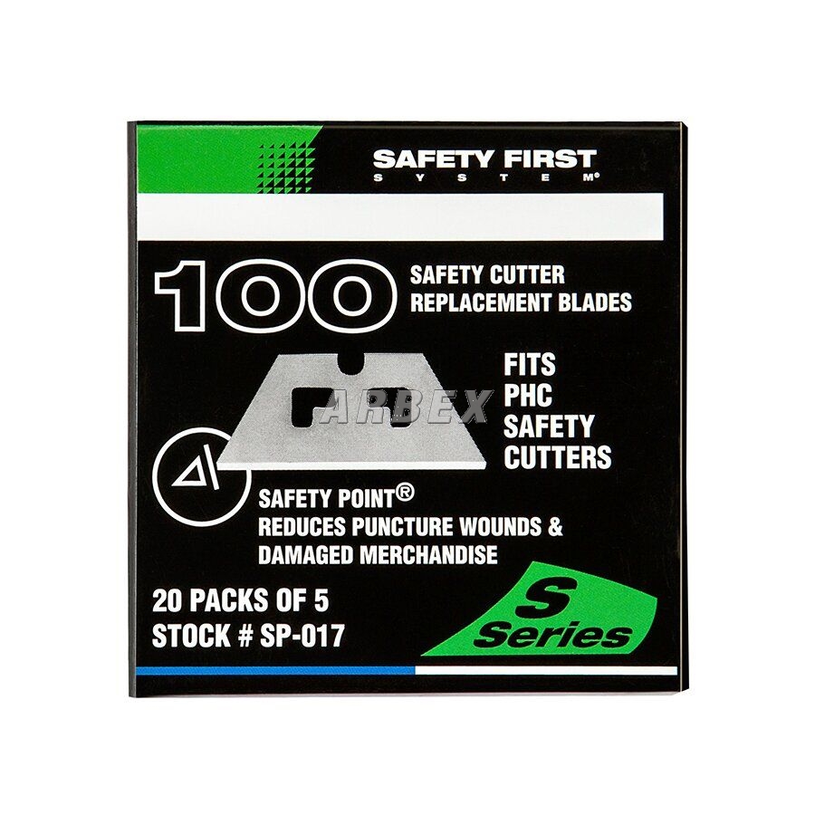Čepel SP-017 má bezpečnostní body pro větší bezpečnost. I když je čepel stále extrémně ostrá, otupené bezpečnostní hroty pomáhají předcházet propíchnutí a poškození zboží. Čepel je navržena tak, aby snadno řezala krabice z vlnité lepenky a širokou škálu dalších materiálů. Čepel je vhodná pro většinu bezpečnostní nožů S4, S4S, S5, S7, S8, EZ1, EZ2+, EZ4, EZ7, GSC3, RZ3 a EZ3. Čepele jsou baleny v krabici po 100 kusech a umístěny do papírových obalů po pěti.