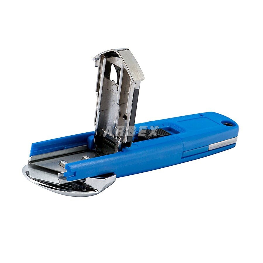 Ochranný kryt zakrývá čepel při řezání shora, aby chránil uživatele, a jedinečný úhel čepele je nastaven speciálně tak, aby nedošlo k poškození obsahu v krabici. Odpruženou čepel lze také v případě potřeby vysunout bez ochranného krytu a má tři blokovací polohy hloubky čepele; horní řez, mělký řez podnosem a hluboký řez. Integrovaná řezačka fólií je ideální pro bezpečné řezání smršťovacích fólií, plastových pásků, motouzů a dalších. Uživatelé také chrání používání vysoce odolného rozřezavače pásky při otevírání krabic dále zabraňuje zranění a prodlužuje životnost čepelí. Díky nejsnazší výměně čepele na trhu tento univerzální řezací nástroj snižuje nákladná poranění žiletkou a dělá řezání krabic bezpečným, snadným a pohodlný.