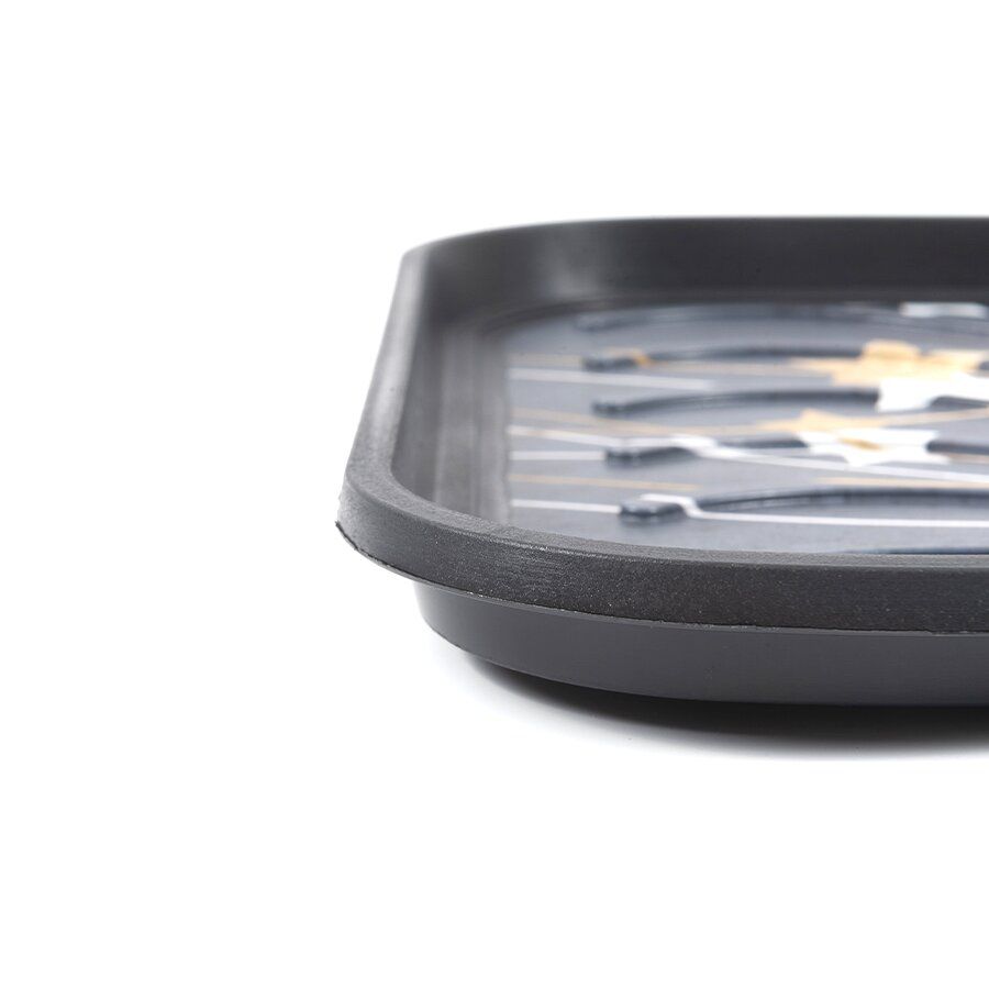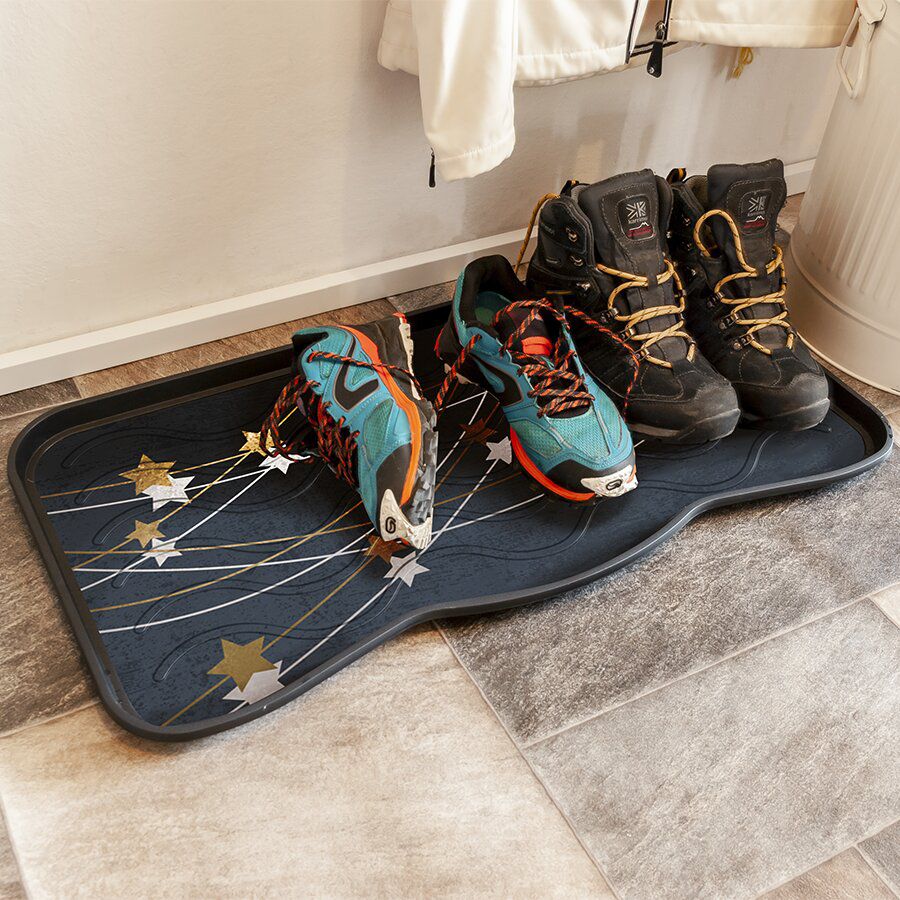 Plastový odkapávač na boty FLOMA Constellation je praktická a ekologická podložka určená k hygienickému a estetickému odkládání obuvi v domácnostech i v autech. Díky vyvýšenému okraji efektivně zachycuje nečistoty, vodu a bláto z obuvi, čímž chrání podlahy před znečištěním a vlhkostí. Tento odkapávač je ideální pro každodenní použití a zároveň může sloužit jako zajímavý designový doplněk interiéru.