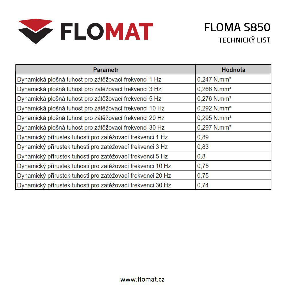 Antivibrační tlumící rohož FLOMA S850 je elastomerická deska vyrobena ze směsi pryžového granulátu SBR a polyuretanového pojiva. Díky tomuto složení perfektně slouží jako ochrana proti chvění, vibracím a také jako izolace budov, vozovek, pilířů a nosníků.