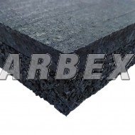 Spodní část: Pryžová antivibrační elastomerická deska vyrobená ze směsi pryžového granulátu SBR a polyuretanového pojiva. Tato antivibrační pryžová deska má široké využití jako univerzální tlumící, protihluková a antivibrační deska.
