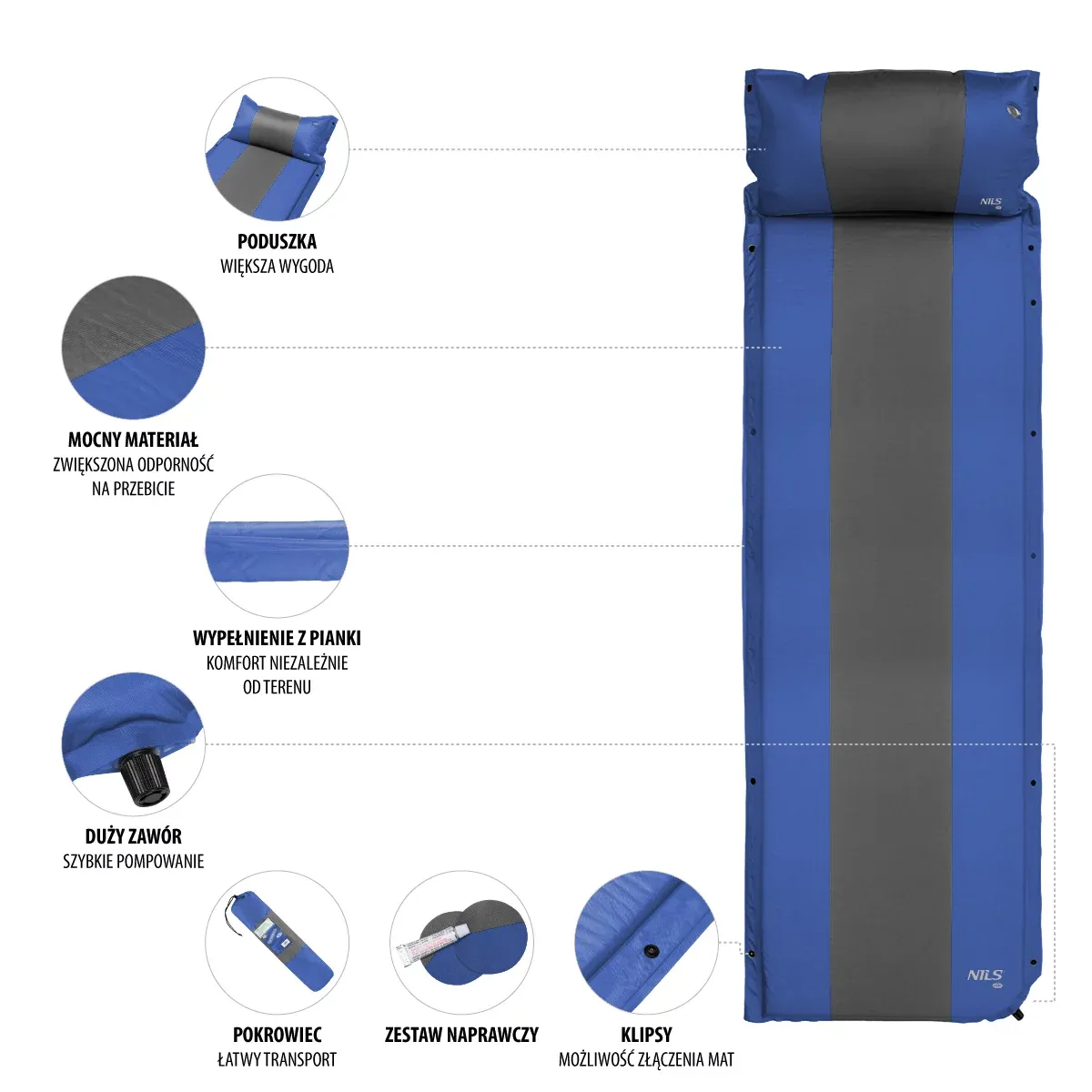 Samonafukovací karimatka NILS CAMP NC4349 je skvělou volbou pro každého, kdo hledá pohodlný a spolehlivý spací komfort během kempování, stanování nebo relaxace v přírodě. Díky svým vlastnostem je ideální i k vodě nebo na letní výlety.