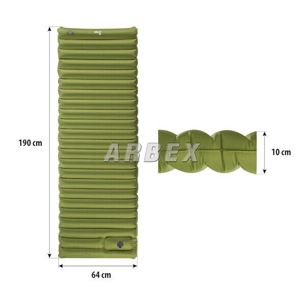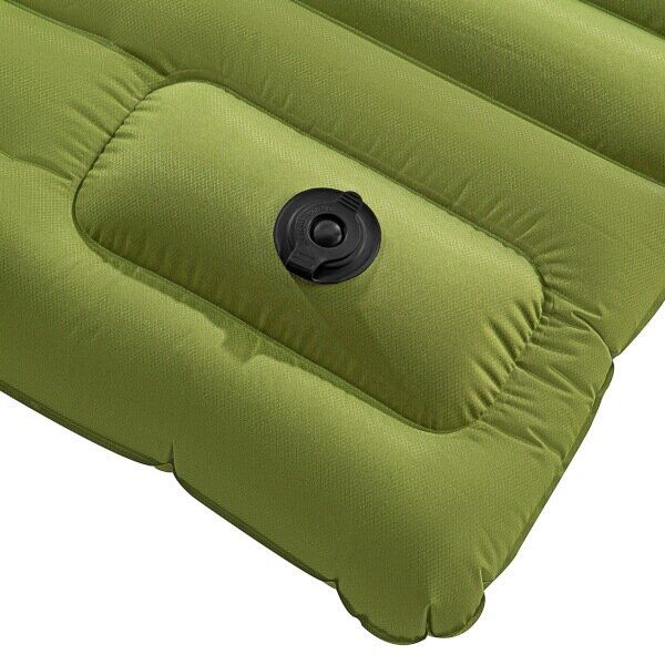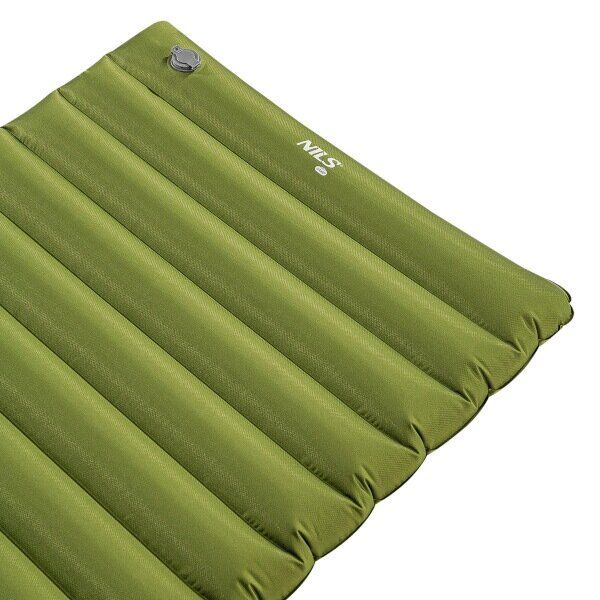 Zelená nafukovací turistická karimatka NILS CAMP NC4101 s integrovanou nožní pumpou je ideálním řešením pro všechny, kdo hledají pohodlný spánek na cestách, ať už pod stanem, na pláži nebo při kempování v přírodě. Díky tloušťce 10 cm poskytuje výjimečný komfort i na nerovném povrchu a uspokojí i náročnější uživatele.