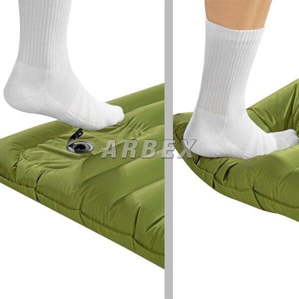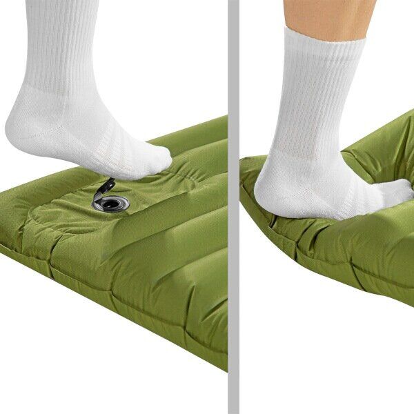 Vestavěná pumpa umožňuje rychlé a pohodlné nafouknutí karimatky bez nutnosti použití externích pomůcek. Stačí sešlapovat integrovanou pumpu nohou a během přibližně jedné minuty je podložka připravena k použití. Po použití lze karimatku snadno srolovat, zajistit popruhem a uložit do přiloženého přepravního vaku, což zaručuje snadnou přepravu a skladování.