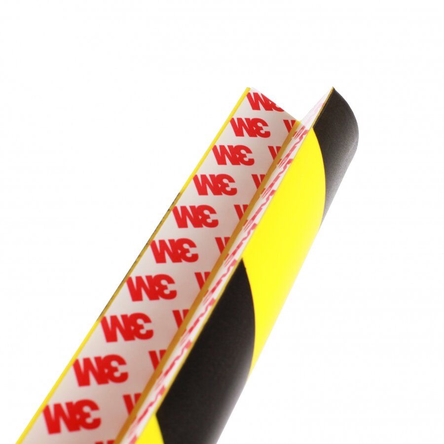 Samolepící pěnový profil na ochranu rohů je ideálním řešením pro prevenci zranění a poškození způsobených nárazem do hran strojů, zařízení nebo konstrukcí. Vyroben ze speciální vysokopevnostní PUR pěny, která tlumí nárazy a zároveň je lehce stlačitelná pro maximální absorpci síly nárazu. Díky samolepící pásce po celé délce je instalace rychlá a jednoduchá. Výstražné černo-žluté pruhy zajišťují vysokou viditelnost a snižují riziko nechtěného kontaktu.