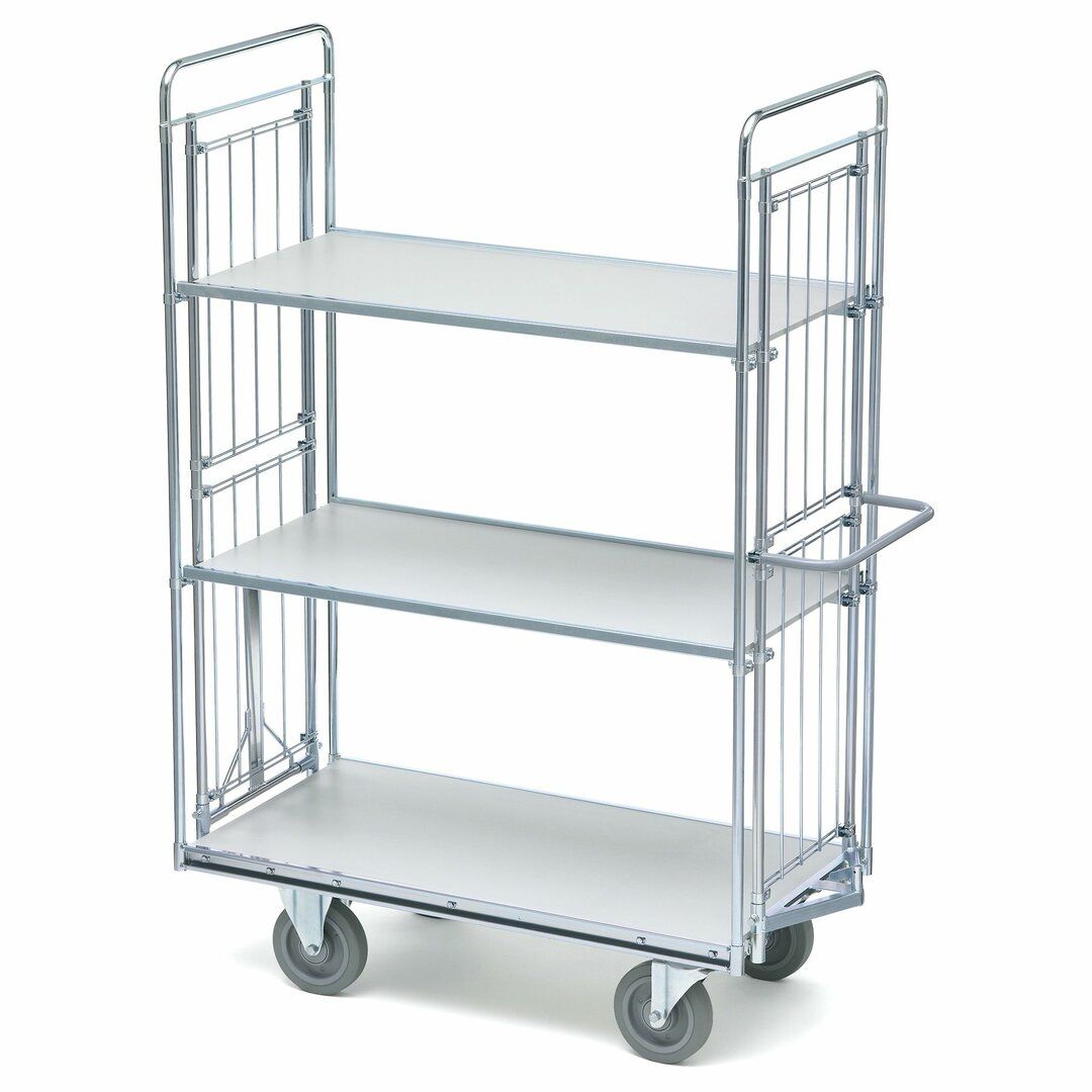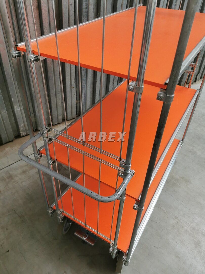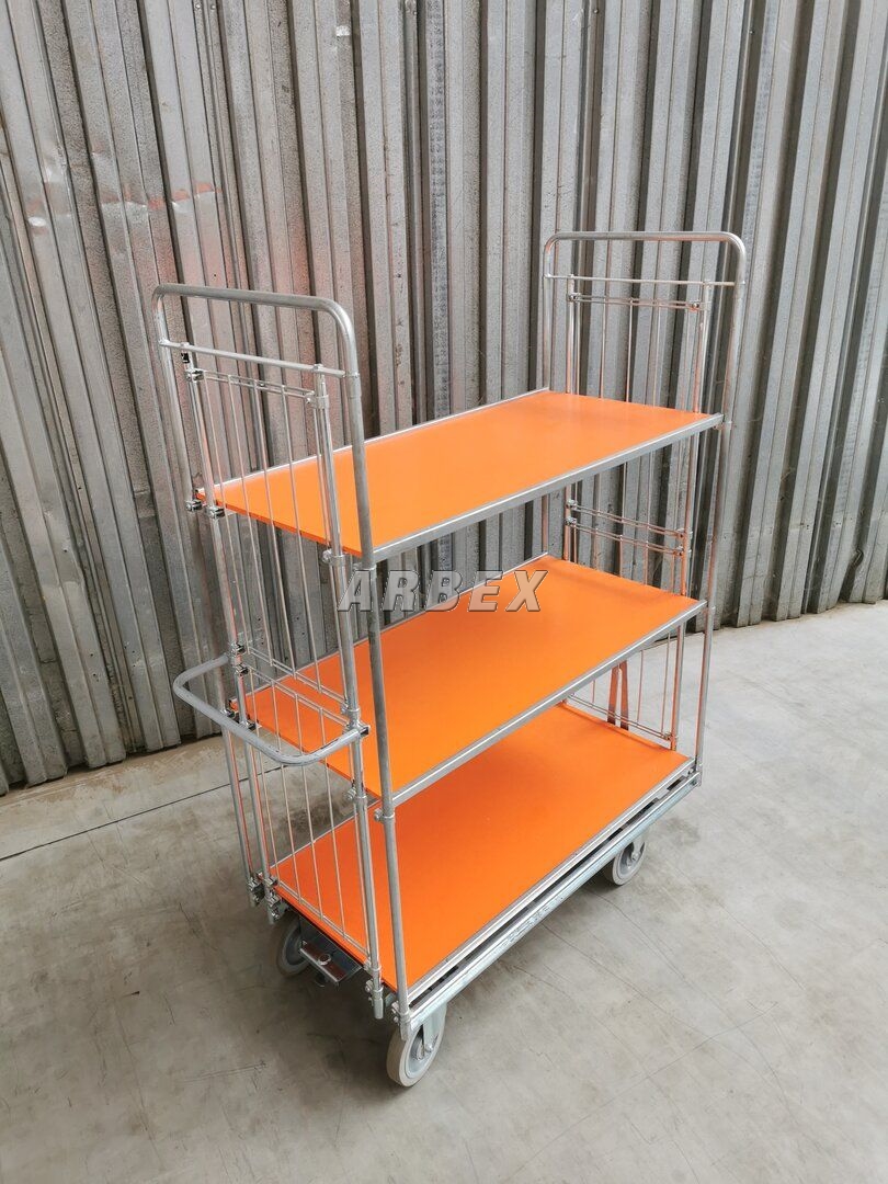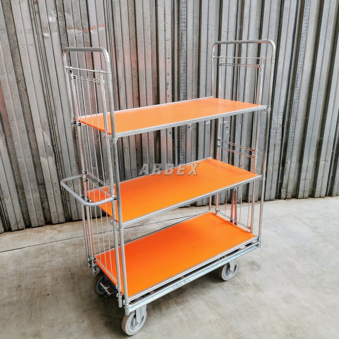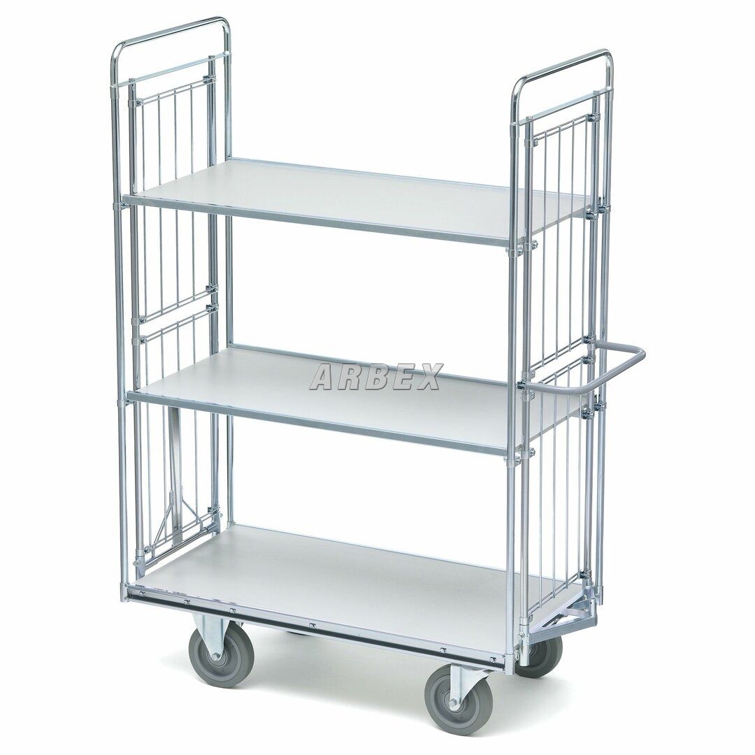 Tento skladový vozík má tři dřevěné police o vysoké nosnosti (150-200 kg / police), které poskytují dostatek místa pro manipulaci velkým s počtem zboží najednou. Police lze jednoduše výškově posouvat, tedy lze vozík přizpůsobit různě vysokému zboží.