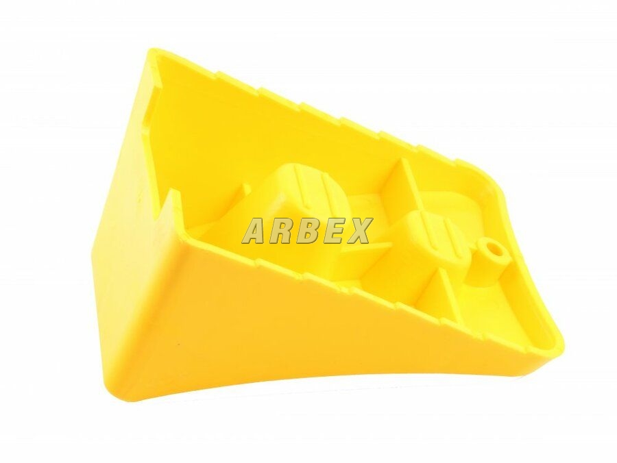 Žlutý plastový protiskluzový zakládací klín je určen k bezpečnému zaklínění pneumatik osobních automobilů a menších přívěsů. Efektivně brání nechtěnému pohybu vozidla při nakládání, vykládání nebo při stání na svahu. Klín je vyroben z lehkého a odolného plastu, který je odolný vůči povětrnostním vlivům a zároveň se snadno přenáší a instaluje. Díky výrazné žluté barvě je snadno viditelný i za zhoršených světelných podmínek. Spodní strana klínu je opatřena protiskluzovým dezénem, který zajišťuje lepší stabilitu a přilnavost na různých typech povrchů.