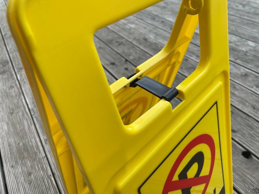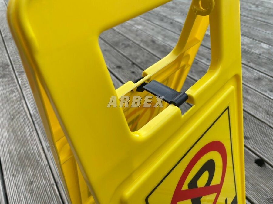 Stojan ve formátu „áčko“ je vybaven západkou proti samovolnému složení a lze jej snadno přenášet i uskladnit. Díky použitému odolnému plastu (PVC) je vhodný pro každodenní profesionální použití v interiéru i krytém exteriéru. Snižuje riziko nesprávného zaparkování a usnadňuje organizaci provozu na parkovištích nebo v logistických areálech.