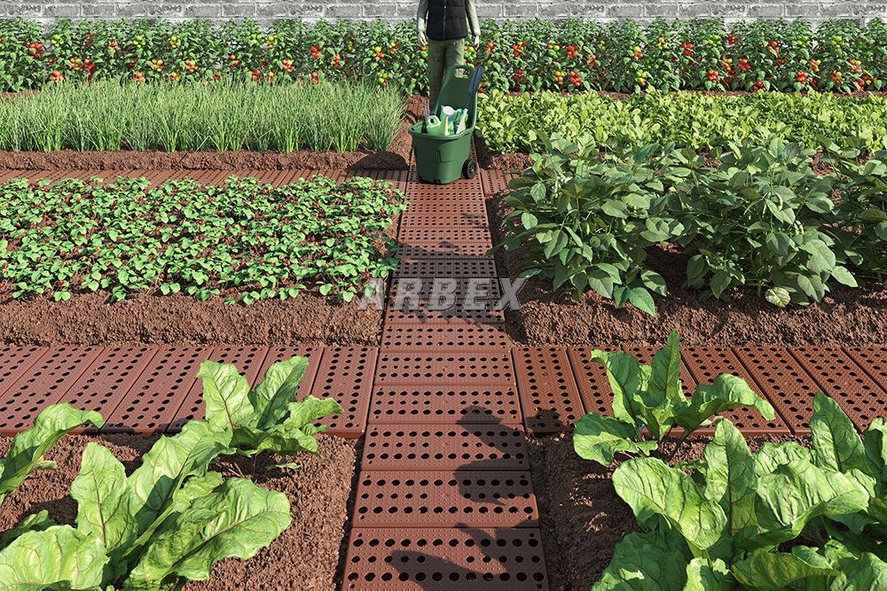 Hnědý plastový záhonový chodník z odolného recyklovaného plastu je ideálním řešením pro vytvoření pevných, čistých a bezpečných cestiček mezi záhony nebo v jiných zahradních a parkových prostorách. Každý díl je opatřen připravenými otvory pro snadné kotvení plastovými hřeby, díky čemuž lze chodník pevně uchytit k podkladu bez rizika posunu. Lze však pokládat do hlíny i bez kotvení. Vyroben je z ekologicky šetrného, mrazuvzdorného a UV stabilního materiálu, který odolává působení chemikálií, posypových solí i extrémním povětrnostním podmínkám. Protiskluzová povrchová struktura zajišťuje bezpečný pohyb za sucha i za deště. Záhonový chodník lze po sezóně snadno demontovat, vyčistit a opakovaně použít. Jsou vhodné nejen do zahrad, ale i pro trvalé nebo dočasné pochozí plochy v parcích, kolem sportovišť, výběhů pro menší zvířata nebo na travnatých přístupových cestách.