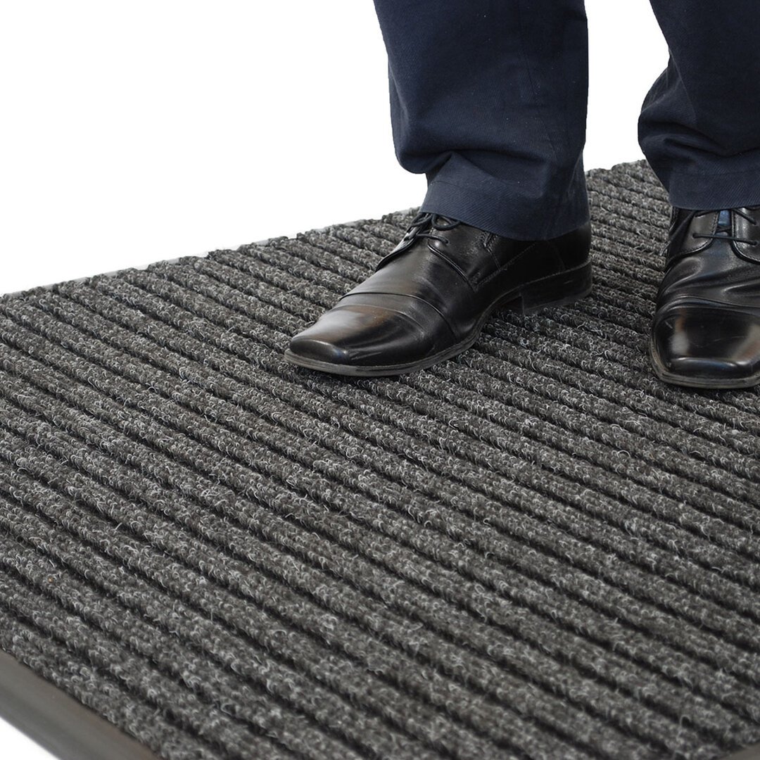 Šedá vstupní rohož s žebrovanými a odolnými vlákny, díky kterým dokonale zadrží bláto, písek a sníh u vchodu. Je odolný vůči nízkým teplotám a vlhkosti.