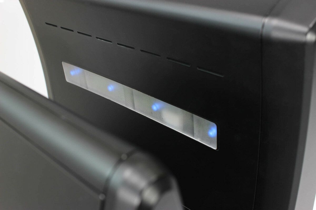 Sušící zóna je osvětlena pomocí 4 modrých LED diod. V přední straně vysoušeče se nachází led dioda skrytá pod podlouhlým průzorem. Modrá barva podsvícení signalizuje, že je vysoušeč připravený k použití. Při používání vysoušeče svítí vysoušeč zeleně, intenzita osvětlení se zvyšuje s časem vysoušení.