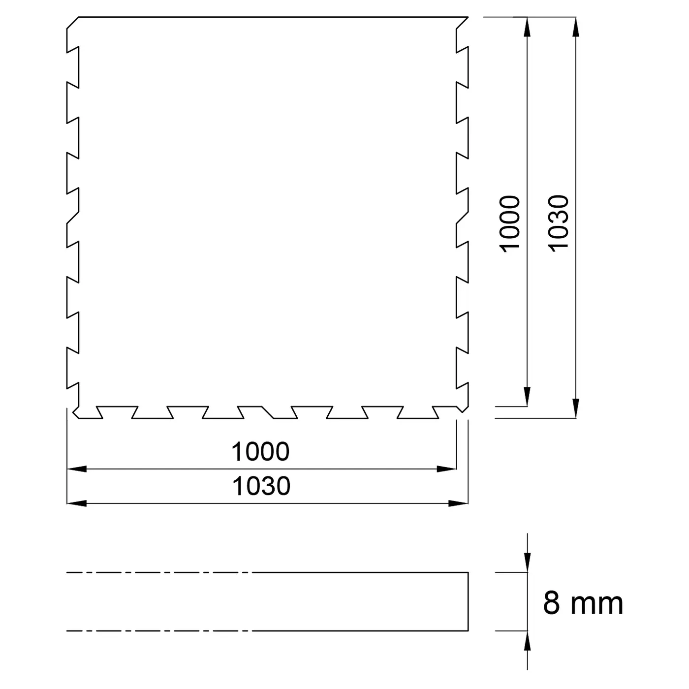 Podložka je vyrobena ze směsi pryžového granulátu SBR a polyuretanového pojiva, čímž je zajištěna její dlouhá životnost. Podložka se skládá z několika dílů, které se jednoduše spojí pomocí puzzle zámků (viz technický nákres v galerii). V případě potřeby lze rozměr podložky změnšit či provést výřez, stačí použít odlamovací nůž, případně jakýkoliv jiný ostrý nůž.