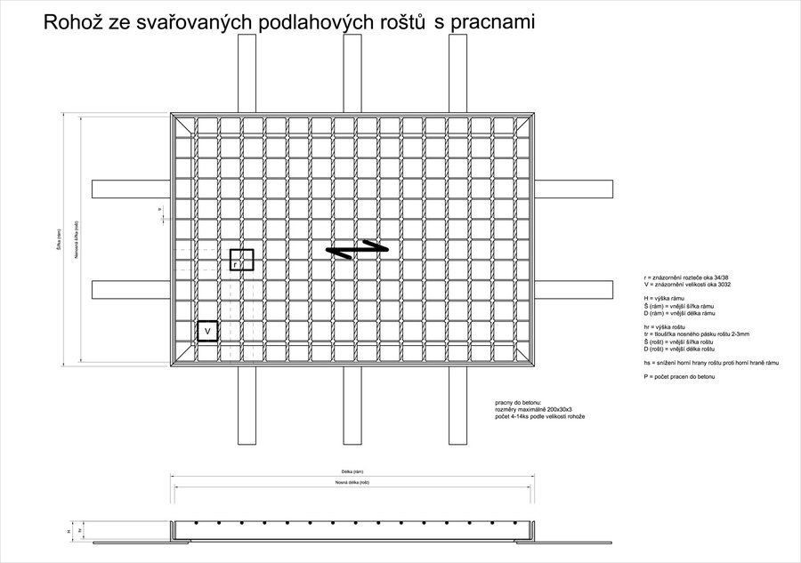 | typ | ze svařovaných podlahových roštů, s gumou, bez pracen |