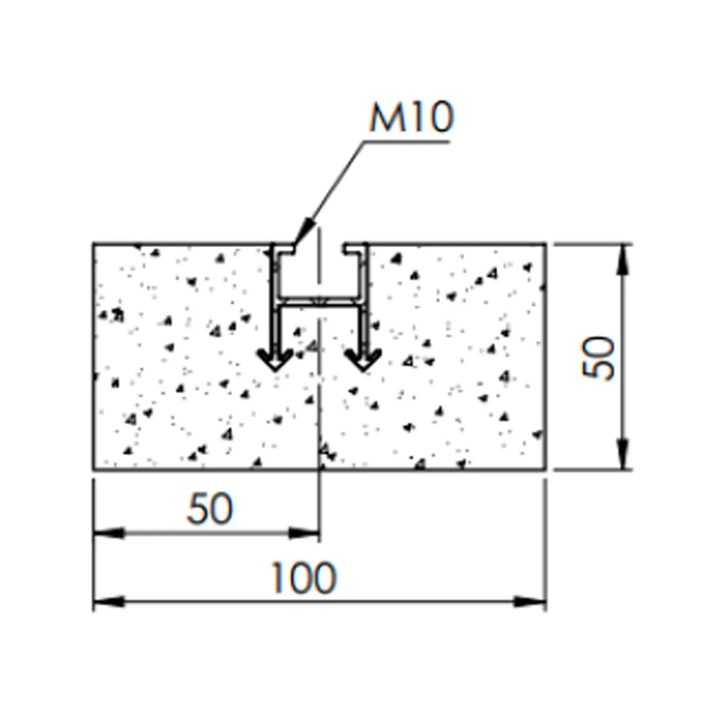 Tento typ podstavce je vybaven vlisovanou kovovou kolejnicí M10. Na spodní straně podstavce/podložky je hliníková folie s protismykovou úpravou, která umožní využití podstavců na střechách s hydroizolací z PVC fólie. Pryžový materiál je odolný vůči UV záření.