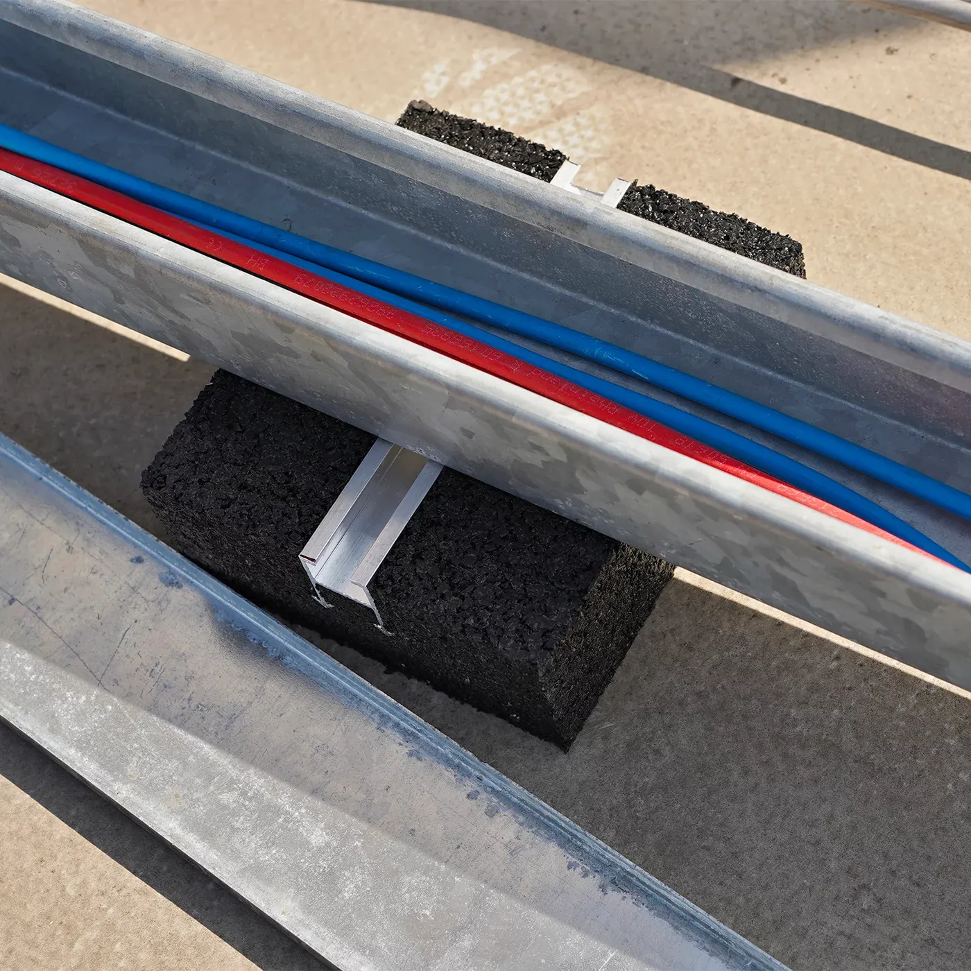 Gumové podstavce pod kabelové žlaby (někdy též nazývané držák kabelového žlabu , konstrukční podložka či podložka pod kabelový žlab ) jsou ideálním řešením pro uložení kabelových žlabů na plochých střechách.