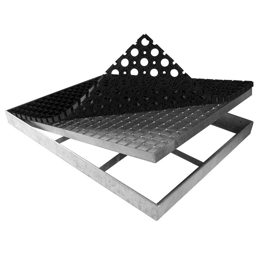 Vstupní čistící rohož ze svařovaných podlahových roštů s gumou je vhodná do vstupních prostor, kde slouží k odstranění hrubých nečistot jako je bahno či sníh. Využití rohože je univerzální, jelikož gumu a rošt lze mezi sebou prohazovat (výška zůstane zachována), lze ji tedy přizpůsobit aktuální potřebě - na sníh je lepší guma, na bahno je lepší rošt.