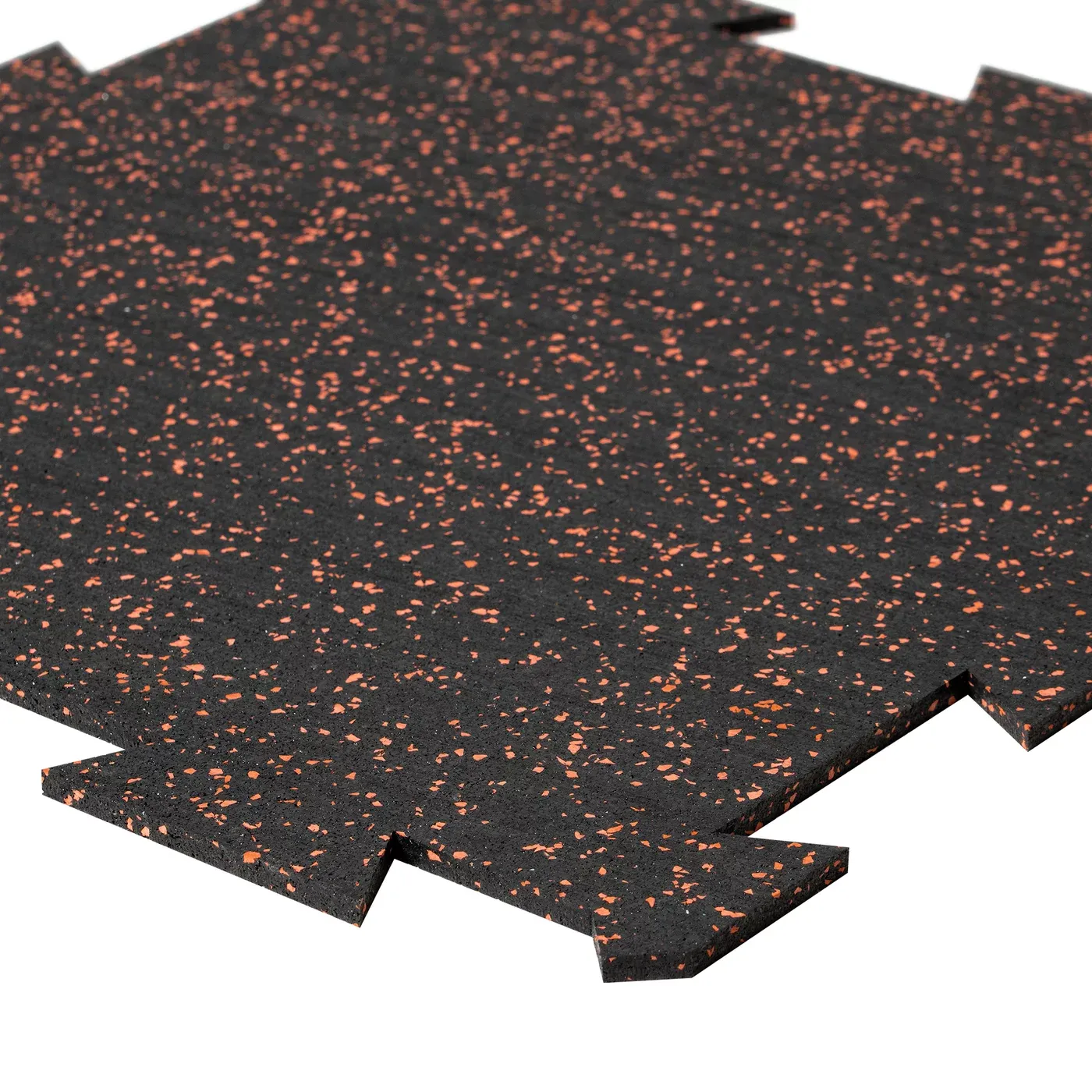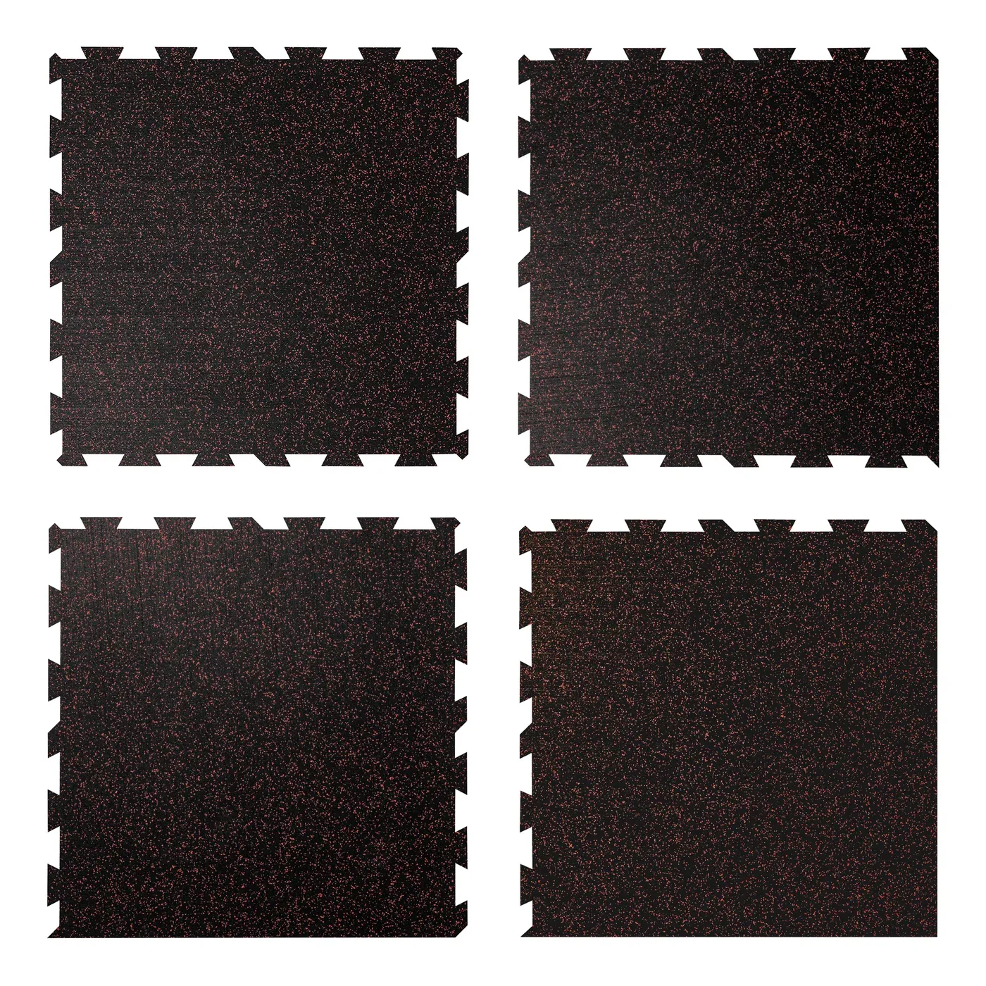 Gumová dlažba (modulová podlaha) FLOMA FitFlo SF1050 s příměsí 10% EPDM barevného granulátu v provedení 10% červená je ideální podlahou do domácích posiloven a fitness (profesionální fitness centra obvykle volí výšku 1,6 cm). Velice dobře absorbuje nárazy, pády při cvičení, zmírňují dopady činek a cvičícího nářadí. Nespornou výhodou materiálu je také šetrnost ke kloubnímu aparátu cvičence. Tato gumová podlahovina se dá použít jako celoplošná podlaha do domacích fitness, jako pochůzné plochy v posilovnách, jako podložky pod cvičící stroje, odkládací plochy pro činky a další.