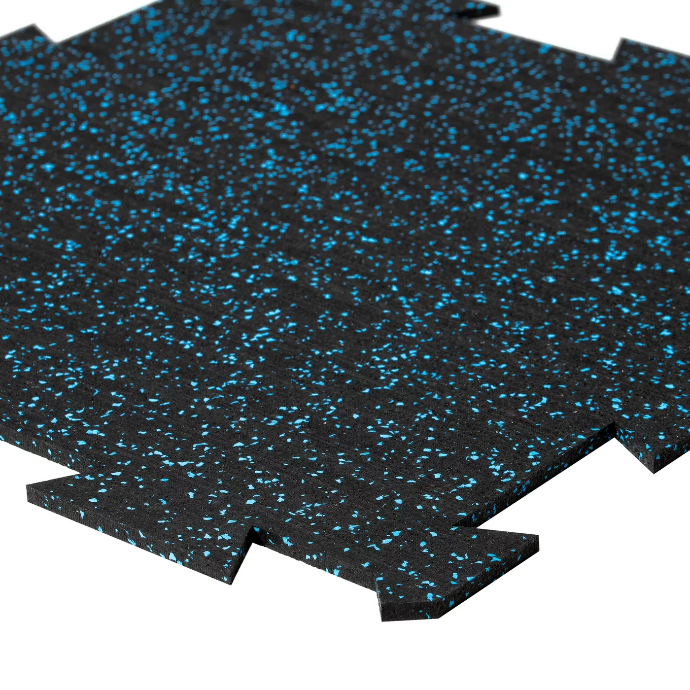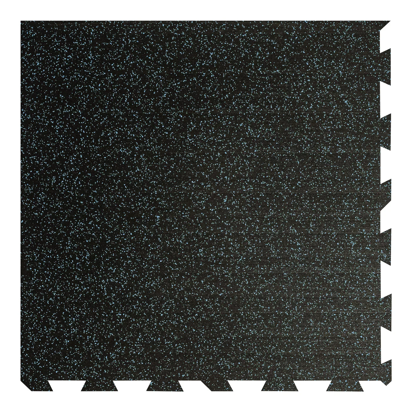 Gumová dlažba (modulová podlaha) FLOMA FitFlo SF1050 s příměsí 10% EPDM barevného granulátu v provedení 10% modrá je ideální podlahou do domácích posiloven a fitness (profesionální fitness centra obvykle volí výšku 1,6 cm). Velice dobře absorbuje nárazy, pády při cvičení, zmírňují dopady činek a cvičícího nářadí. Nespornou výhodou materiálu je také šetrnost ke kloubnímu aparátu cvičence. Tato gumová podlahovina se dá použít jako celoplošná podlaha do domacích fitness, jako pochůzné plochy v posilovnách, jako podložky pod cvičící stroje, odkládací plochy pro činky a další.