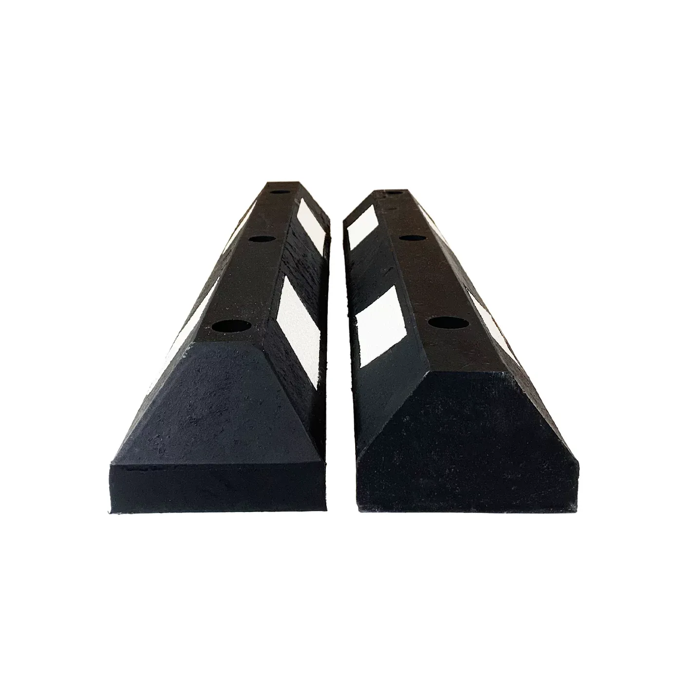 Pro plnou funkčnost je nezbytné doraz pevně ukotvit k podkladu. V dorazu jsou předlisované otvory, které stačí provrtat skrz materiál. Na betonové povrchy doporučujeme použít ocelové kotvy, zatímco pro asfalt jsou vhodné hmoždinky a montážní šrouby o průměru 14 mm (nejsou součástí sady). Standardně se dorazy instalují ve vzdálenosti 70–80 cm od stěny nebo jiné překážky – tato mezera zajistí, že přední či zadní převis vozidla nezasáhne stěnu dříve, než pneumatika narazí na zarážku.