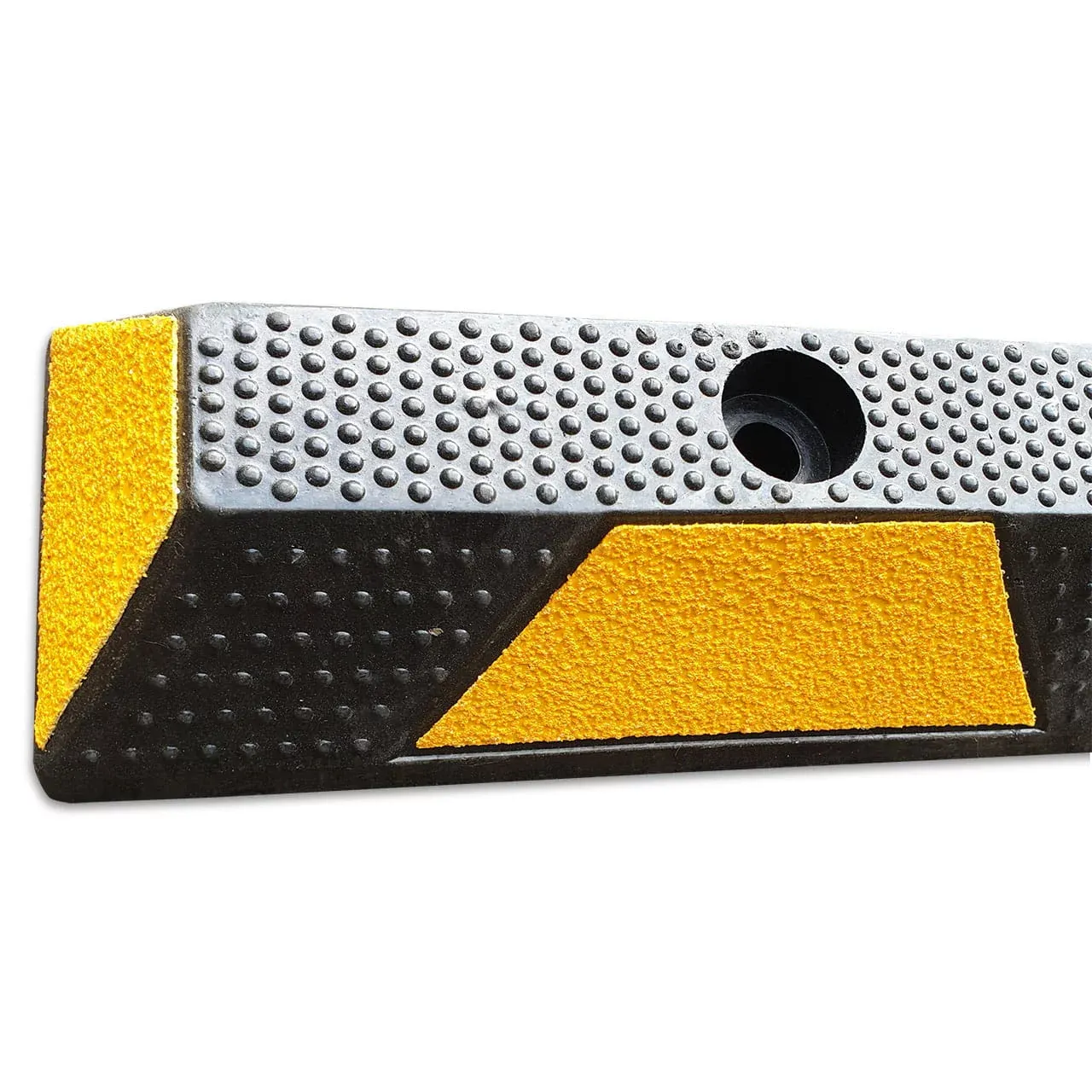 Černo-žluté parkovací dorazy jsou vyrobeny z extrémně odolné, homogenní a trvdé pryžové směsi. Při vystavení nepříznivým povětrnostním podmínkám se materiál nedelaminuje ani nebarví. Tyto dorazy označují hranici parkovacího místa. Jsou opatřeny diagonálními pruhy reflexní páseky. Dorazy mají speciální protiskluzový povrch, výstupky na povrchu nárazníku mají chránit kolemjdoucí před uklouznutím.