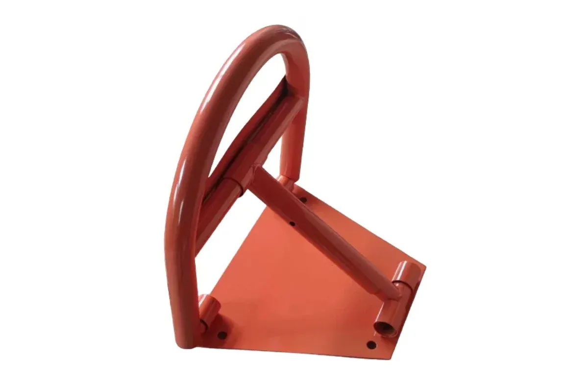 Červená parkovací zábrana vyrobená z vysoce kvalitní oceli se vyznačuje odolností a masivností. Zábrana má svislý sloupek a profilované, klenuté břevno. Tato zábrana je přáškově lakovaná. Výrobek je viditelný po setmění a za ztížených povětrnostních podmínek. Zábranu je možno zamknout visacím zámkem (zámek je součástí sady).