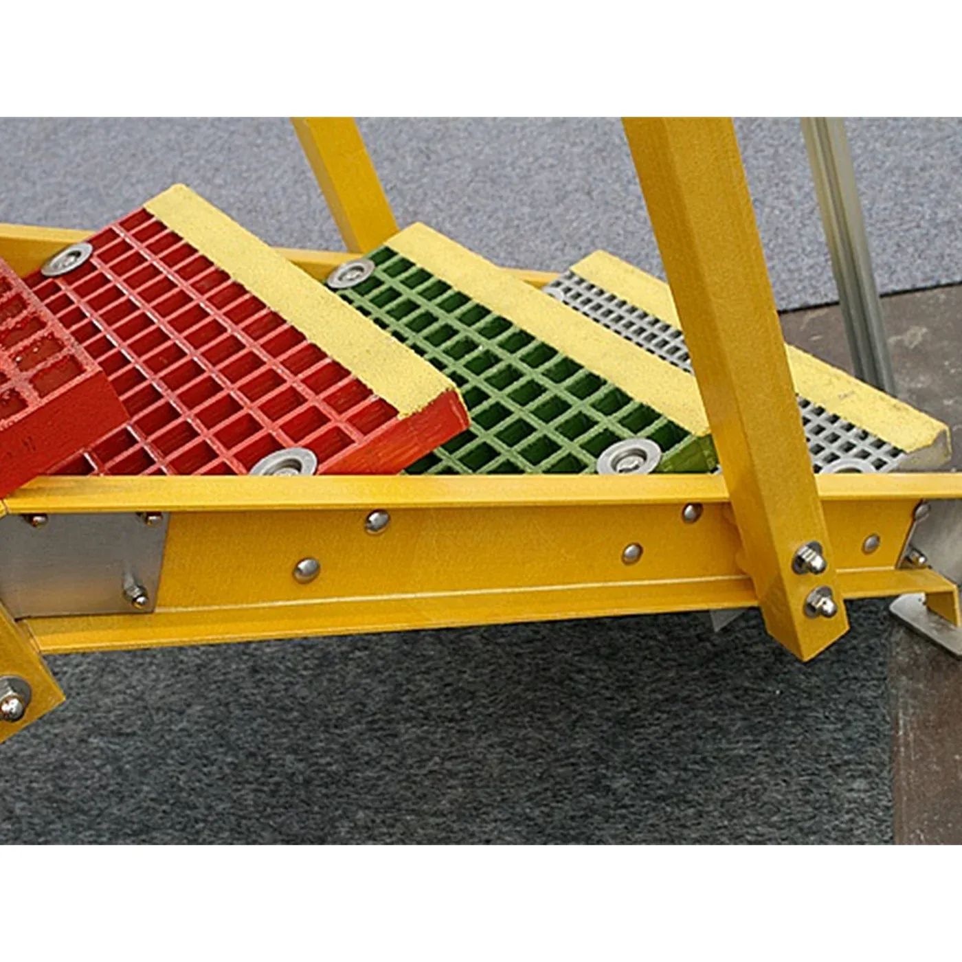 Schodišťový stupeň je vyroben technologií lití do forem, přičemž obsahuje skleněná vlákna zalitá kompozitním materiálem na bázi pryskyřice. Díky obsahu 30–40 % skelných vláken nabízí vynikající nosnostní parametry a přirozenou pružnost, což umožňuje jeho návrat do původního tvaru i po krátkodobém zatížení.