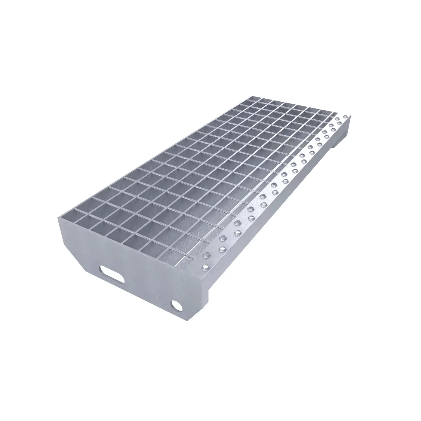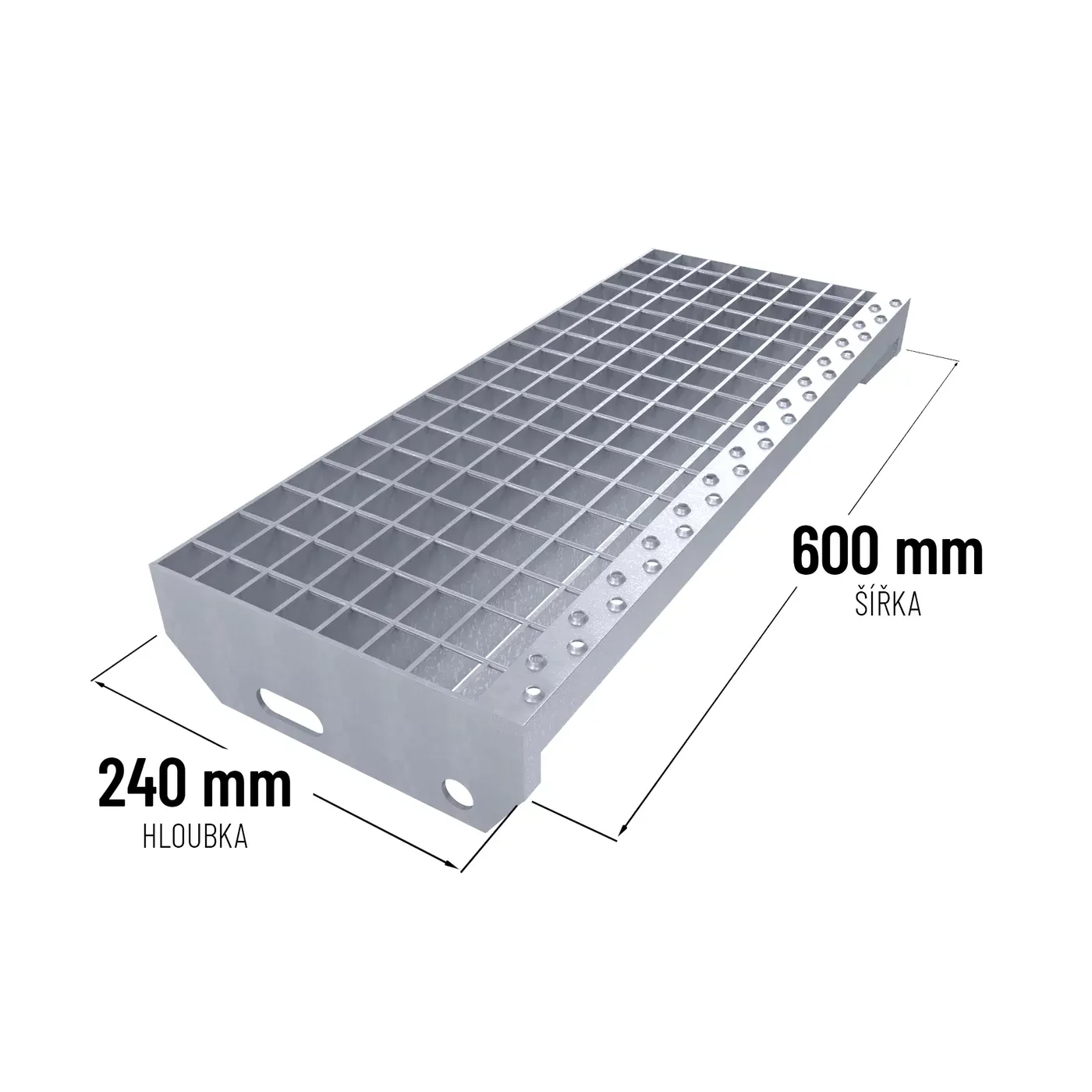Ocelové schodišťové stupně jsou žárově pozinkovány, což zajišťuje jejich vysokou odolnost vůči korozi. Jsou opatřeny dvojitě děrovanou protiskluzovou nášlapnou hranou, která výrazně snižuje riziko uklouznutí, a bočnicemi s předvrtanými otvory pro snadné přišroubování na konstrukci. Toto praktické řešení minimalizuje riziko uklouznutí, i při znečištění schodů například olejem. Schodišťové stupně splňují požadavky normy DIN 24531.