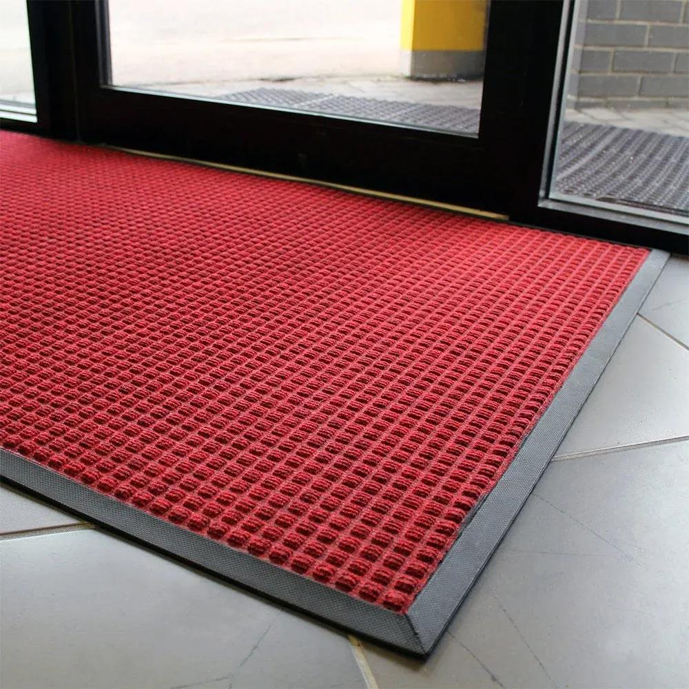 Červená vstupní čisticí rohož je ideální pro kancelářské a obecné pracovní prostory. Díky zpevněnému lisovanému vzoru účinně odstraňuje nečistoty z podrážek a pomáhá snižovat množství špíny vnášené do budovy. Přírodní a recyklovaný kaučuk zajišťuje stabilitu a odolnost. Rohož výjimečně dobře zachycuje vlhkost a dokáže zadržet až 5,4 litru vody na m2, což zajišťuje čistší a bezpečnější prostředí.