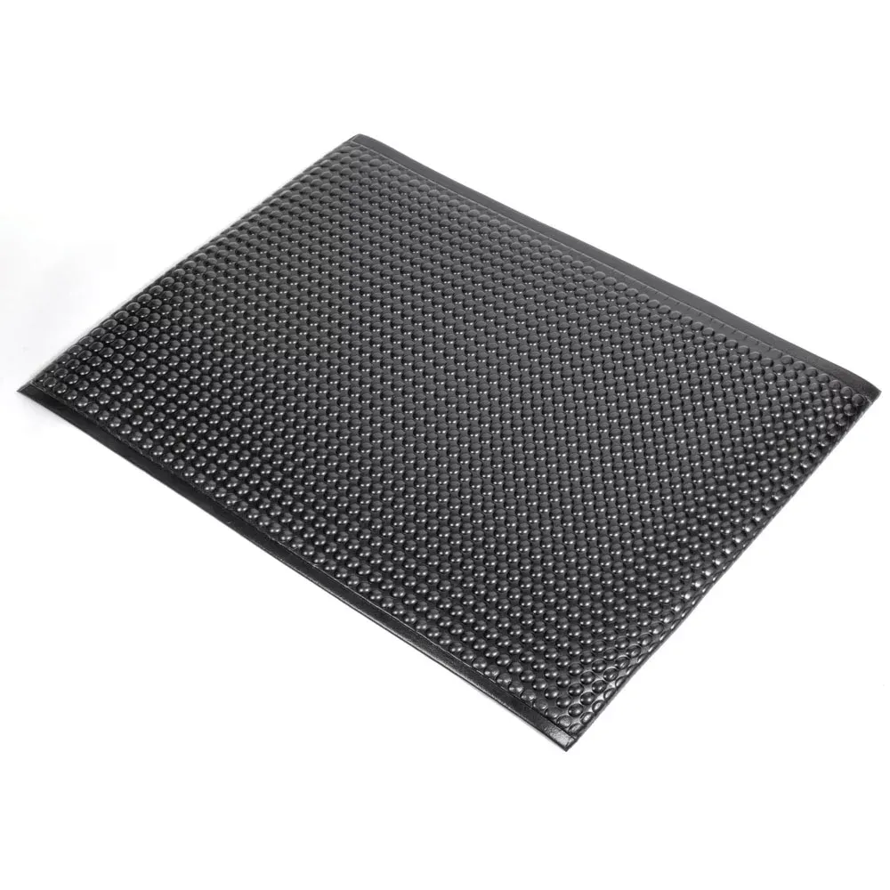 Dvouvrstvá protiúnavová rohožka je navržena pro maximální pohodlí a snížení únavy při dlouhodobém stání. Zvýšený bublinkový vzor stimuluje chodidla, podporuje krevní oběh a snižuje riziko únavy, zatímco odolný vrchní povrch zajišťuje vysokou odolnost proti opotřebení. Spodní vrstva s nízkou hustotou poskytuje vynikající odpružení a izoluje proti chladu betonových podlah. Díky protiskluzovému povrchu a zkoseným okrajům minimalizuje riziko zakopnutí a uklouznutí. Rohožka je k dispozici také ve verzi s vysokou viditelností a žlutými okraji, což zvyšuje bezpečnost na pracovišti.