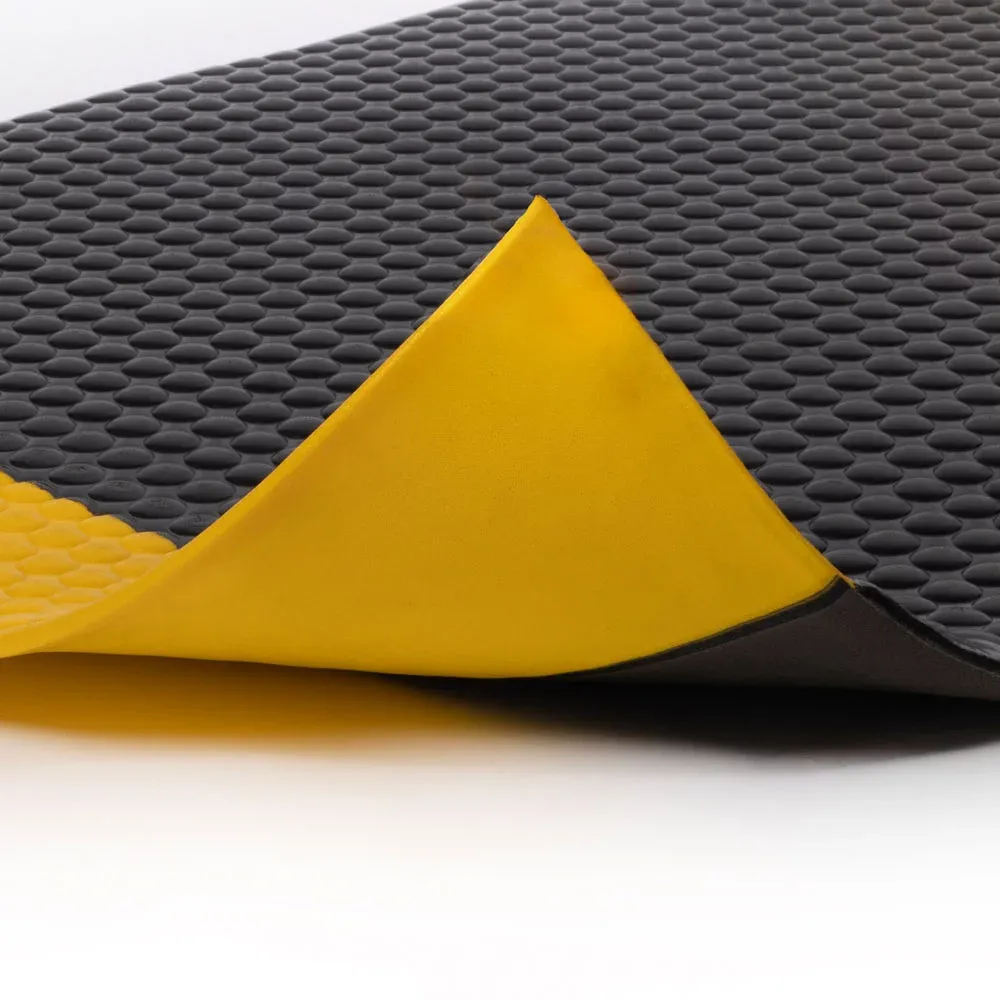 Dvouvrstvá protiúnavová rohožka je navržena pro maximální pohodlí a snížení únavy při dlouhodobém stání. Zvýšený bublinkový vzor stimuluje chodidla, podporuje krevní oběh a snižuje riziko únavy, zatímco odolný vrchní povrch zajišťuje vysokou odolnost proti opotřebení. Spodní vrstva s nízkou hustotou poskytuje vynikající odpružení a izoluje proti chladu betonových podlah. Díky protiskluzovému povrchu a zkoseným okrajům minimalizuje riziko zakopnutí a uklouznutí. Rohožka je k dispozici také ve verzi s vysokou viditelností a žlutými okraji, což zvyšuje bezpečnost na pracovišti.