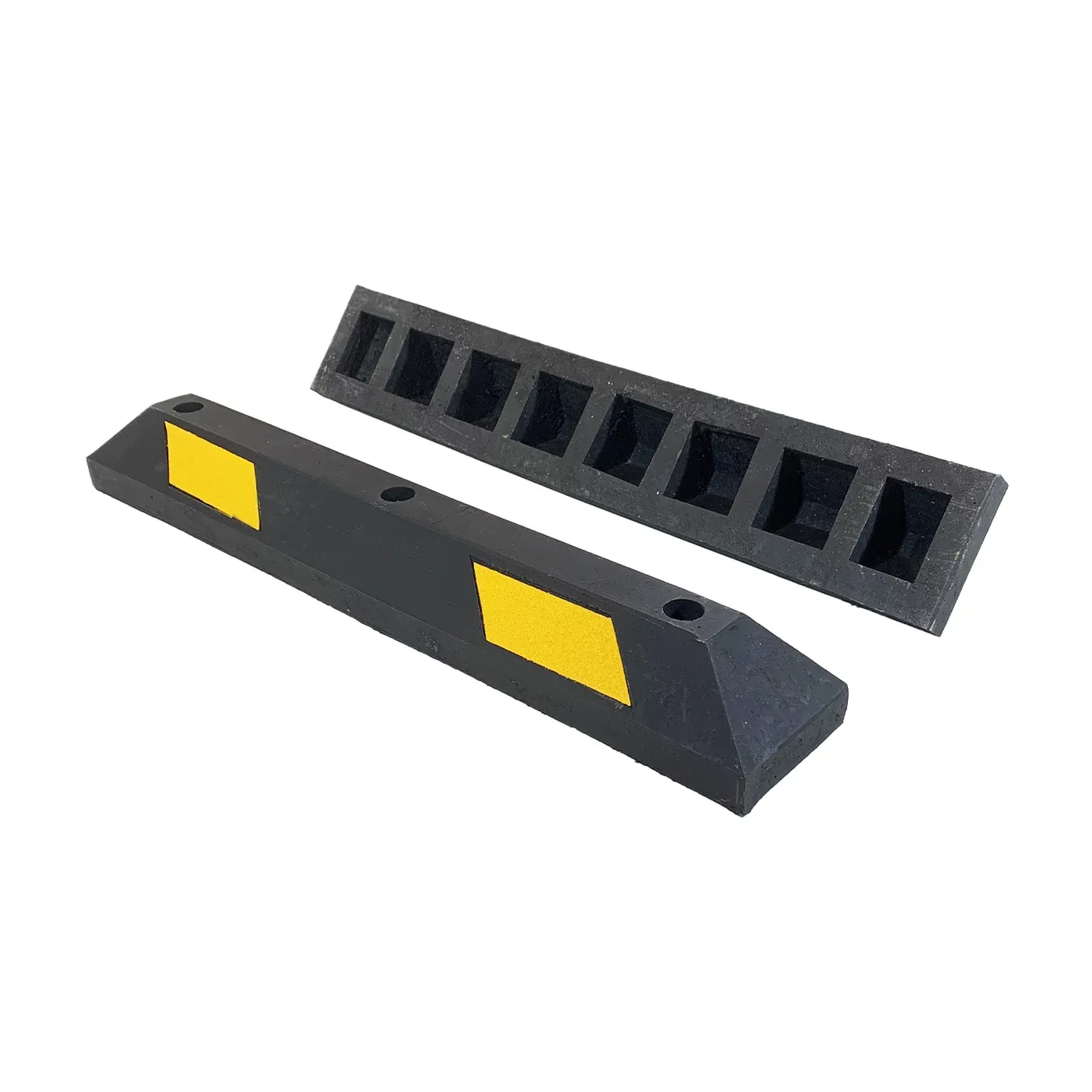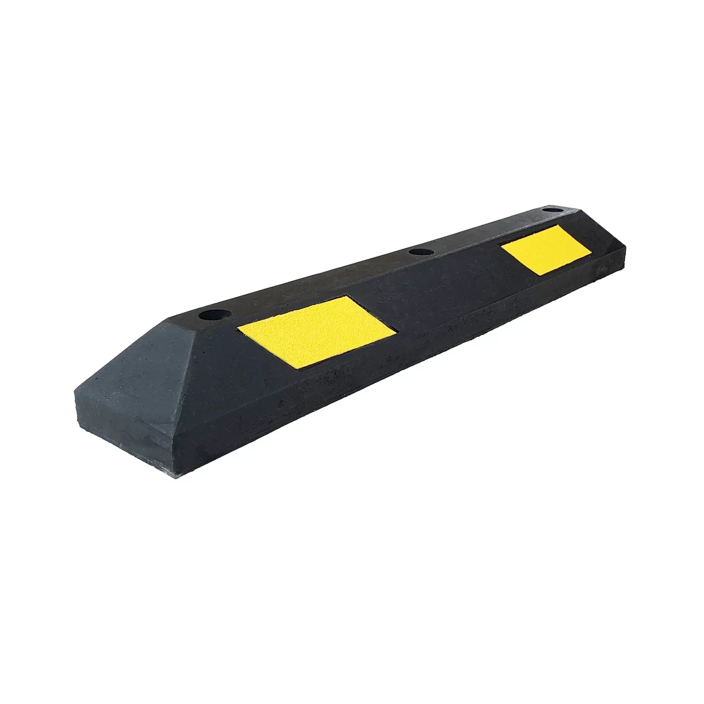 Doraz je opatřen žlutými diagonálními reflexními pruhy, které zajišťují skvělou čitelnost i za šera, v dešti nebo v tmavých koutech podzemních garáží. Díky své délce 90 cm je tento doraz ideální pro instalaci v párech (jeden pro každé kolo) nebo jako samostatný středový prvek pro menší parkovací sloty. Materiál je plně rezistentní vůči UV záření, olejům, solím i extrémním teplotám, což zaručuje jeho dlouhou životnost v interiéru i exteriéru.