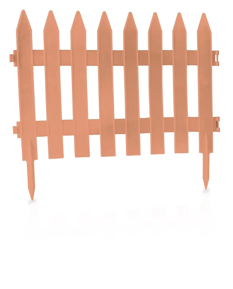 Hnědý venkovní zahradní plůtek je dekorativní a praktický prvek pro úpravu zahrady. Slouží k oddělení záhonů, trávníků a chodníků. Vyroben z odolného plastu v teplém terakotovém odstínu, který působí přirozeně a ladí s okolní zelení. Plůtek je lehký, snadno sestavitelný a odolný vůči povětrnostním vlivům. Každý díl má délku 46 cm, v balení je 7 kusů, což dohromady tvoří celkovou délku 322 cm.
