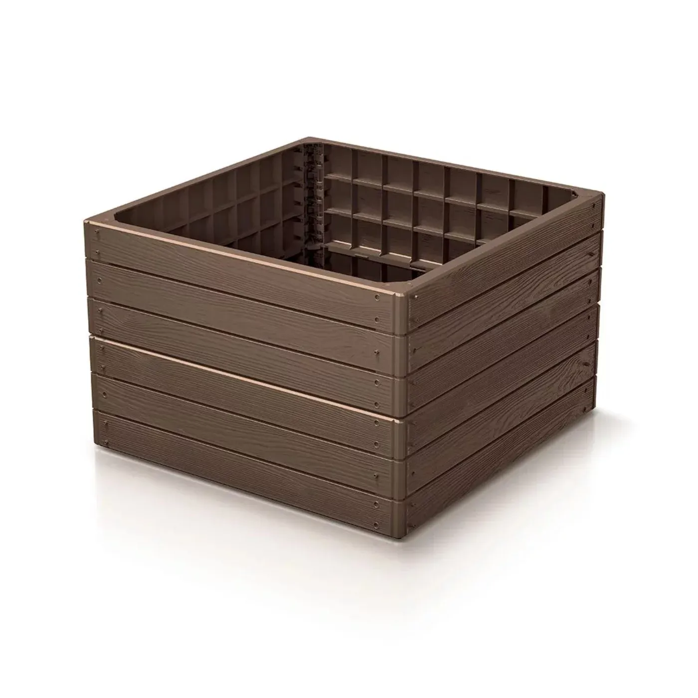 Hnědý vyvýšený stohovatelný záhon je elegantní a ekologické řešení pro pěstování zeleniny, bylinek či květin. Vyrobený z recyklovaného kompozitního materiálu, který imituje dřevo, nabízí odolnost vůči povětrnostním vlivům bez nutnosti údržby. Ideální pro zahrady, terasy i balkony.