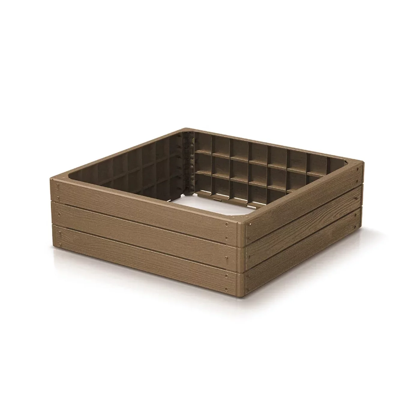 Hnědý vyvýšený stohovatelný záhon je elegantní a ekologické řešení pro pěstování zeleniny, bylinek či květin. Vyrobený z recyklovaného kompozitního materiálu, který imituje dřevo, nabízí odolnost vůči povětrnostním vlivům bez nutnosti údržby. Ideální pro zahrady, terasy i balkony.