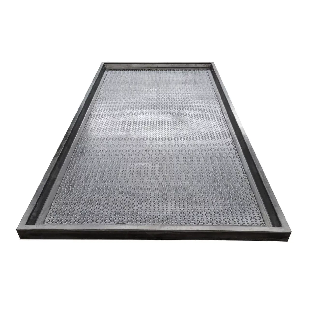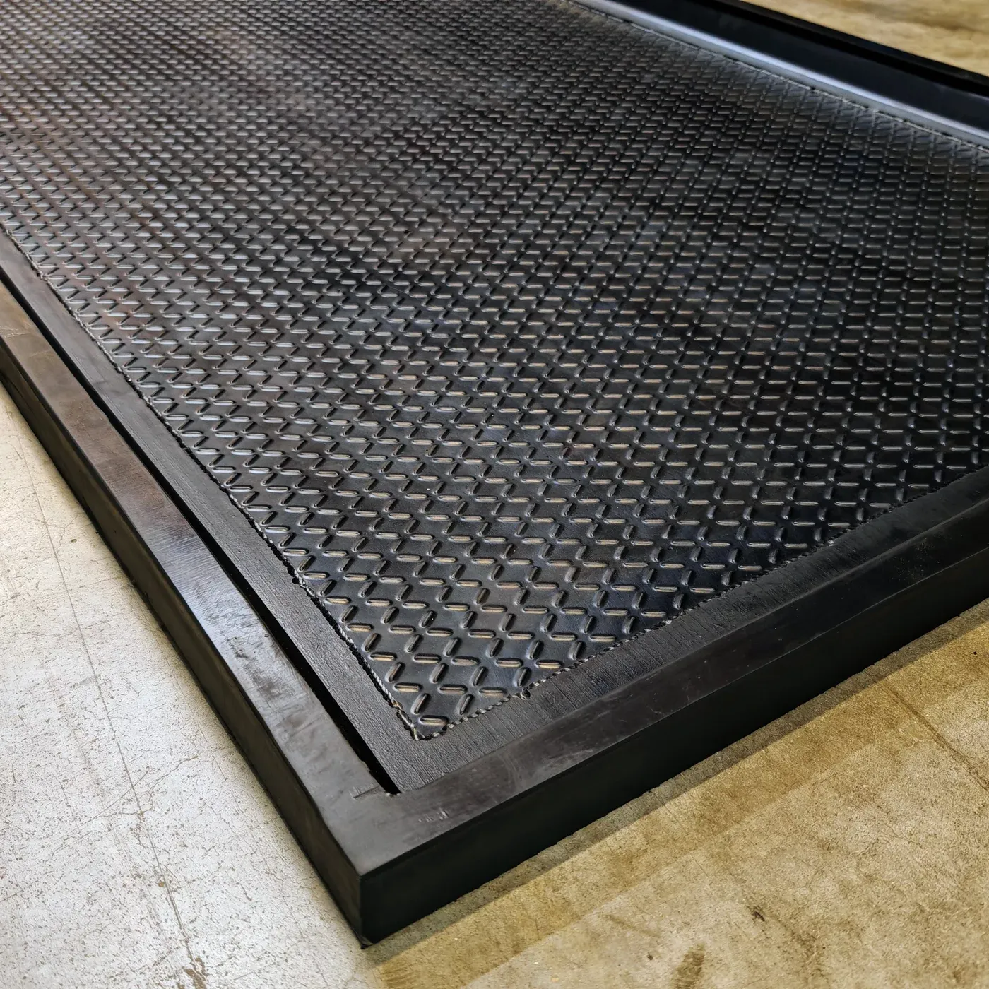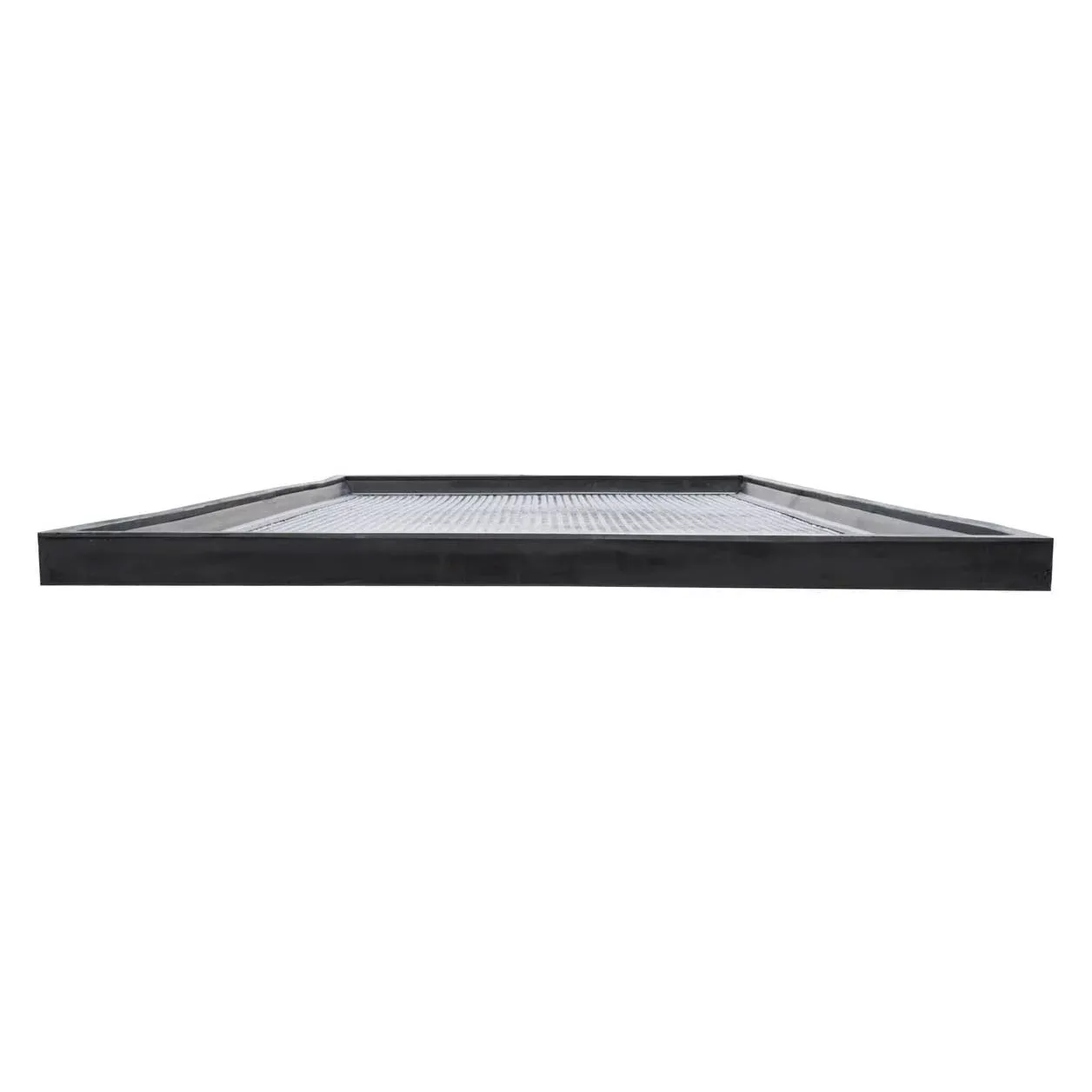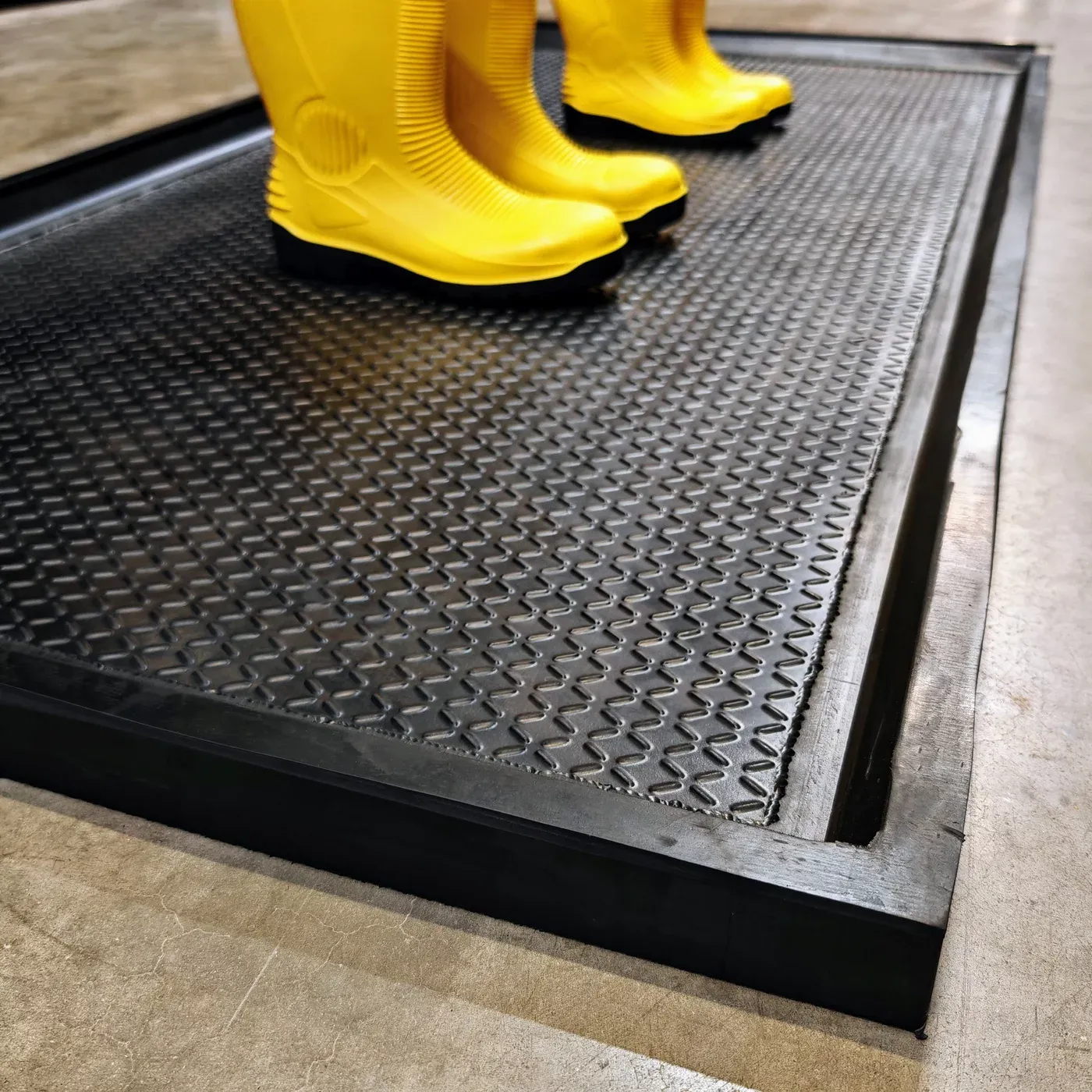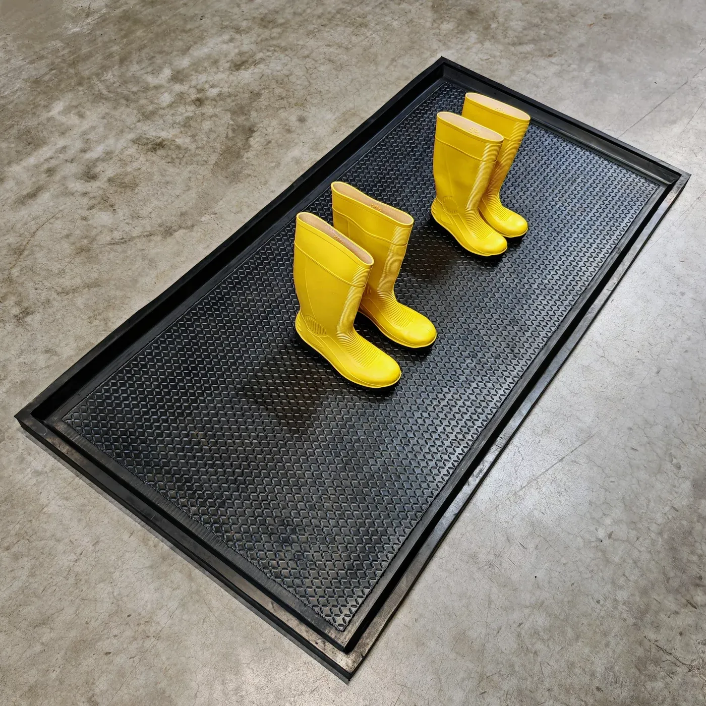 Dekontaminační vana je navržena tak, aby pojala dostatek dezinfekčního roztoku pro efektivní čištění podrážek obuvi i paznehtů/kopyt zvířat. Výška vany 5 cm usnadňuje vstup, minimalizuje riziko zakopnutí a zároveň brání rozlití roztoku.
