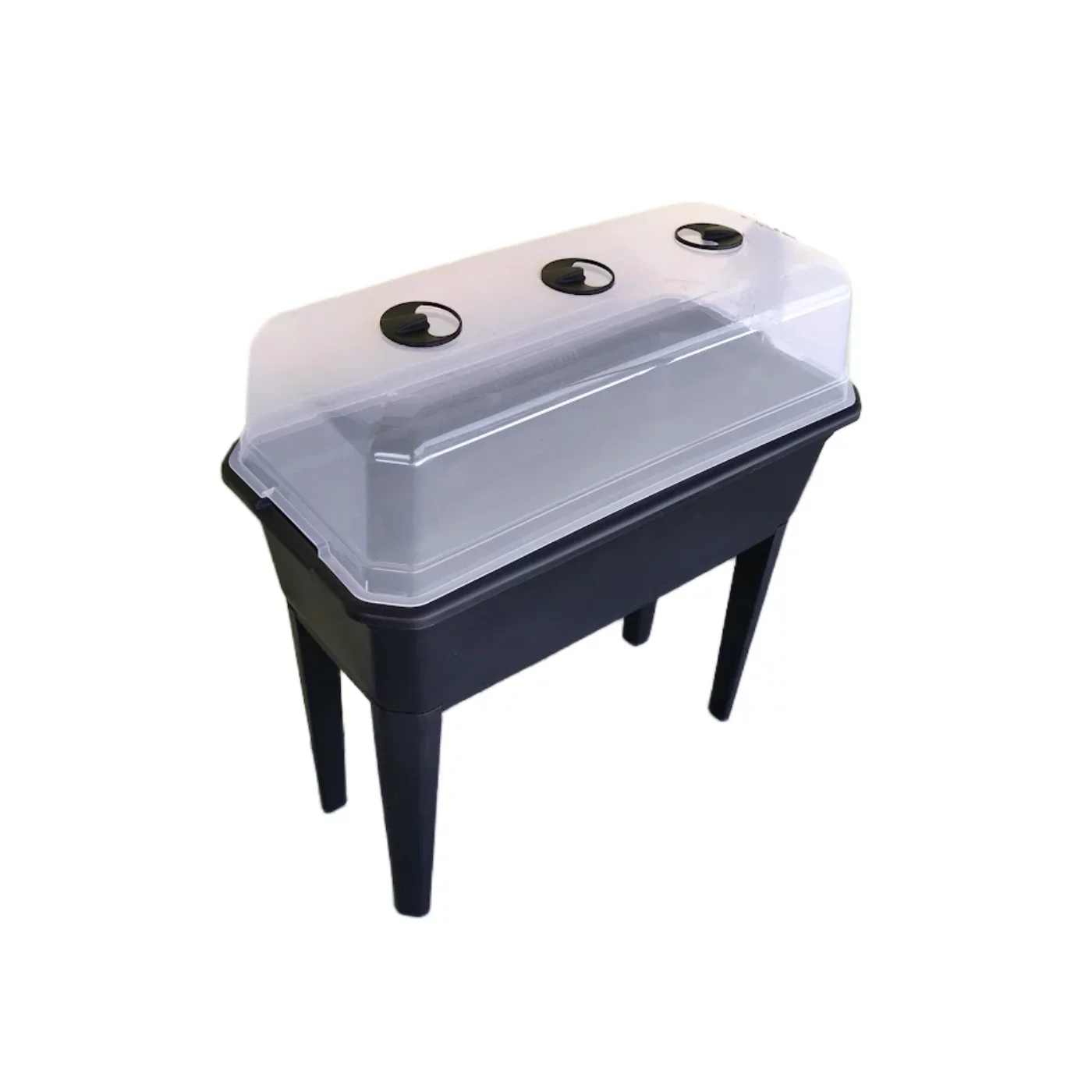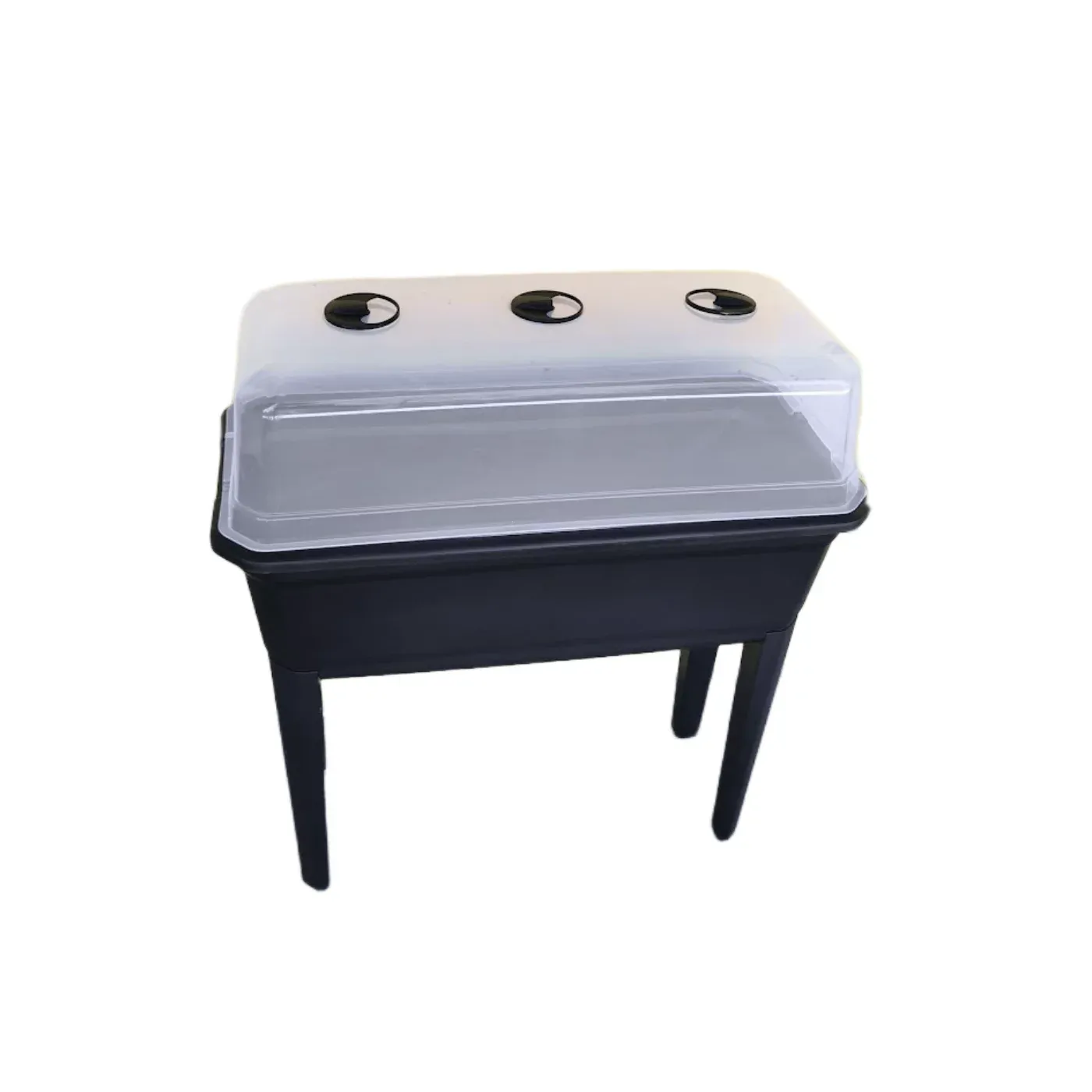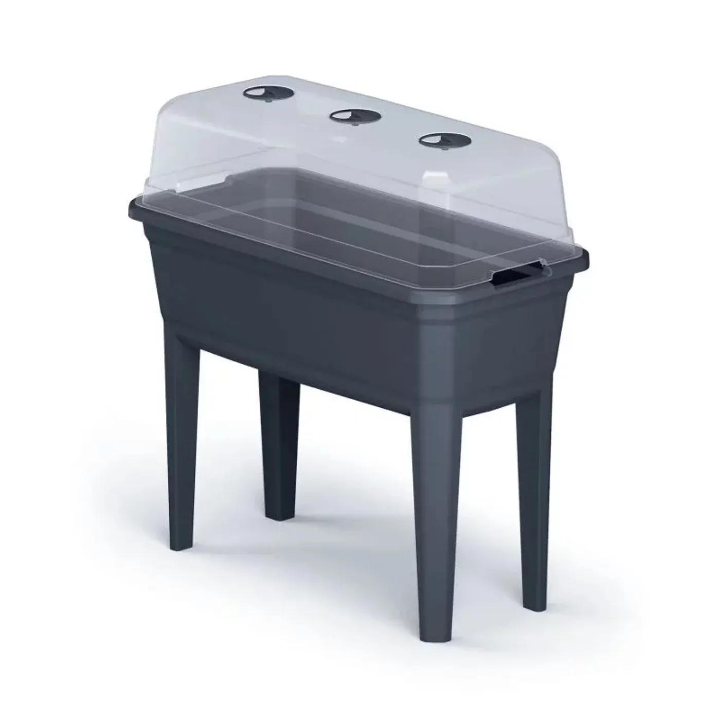 Černý plastový zahradní sadbovač GH76 je praktický a elegantní miniskleník vhodný pro předpěstování sazenic, bylinek nebo drobné zeleniny. Kombinuje plastový truhlík s průhledným víkem, které udržuje stabilní mikroklima a podporuje klíčení rostlin. Díky svému kompaktnímu tvaru je ideální na parapety, balkony i zahradní stoly.