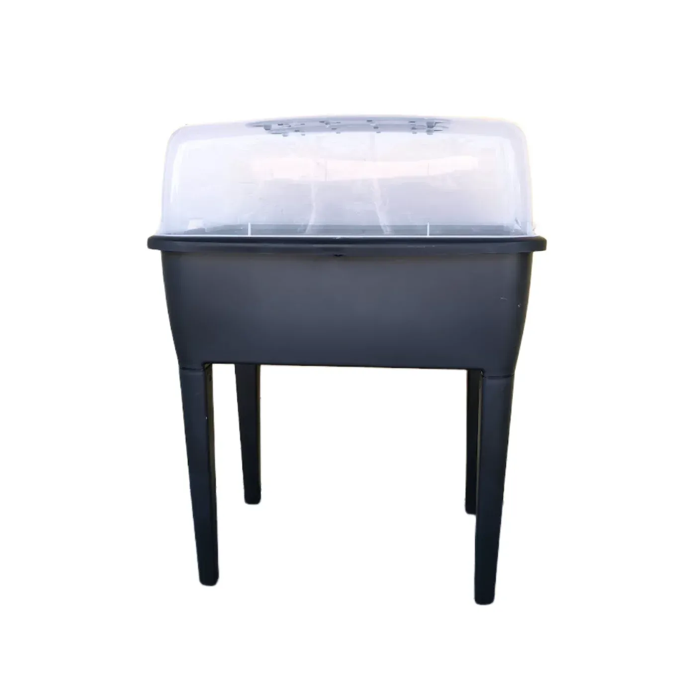 Černý plastový zahradní sadbovač je praktický a elegantní miniskleník vhodný pro předpěstování sazenic, bylinek nebo drobné zeleniny. Kombinuje plastový truhlík s průhledným víkem, které udržuje stabilní mikroklima a podporuje klíčení rostlin. Díky svému kompaktnímu tvaru je ideální na parapety, balkony i zahradní stoly.