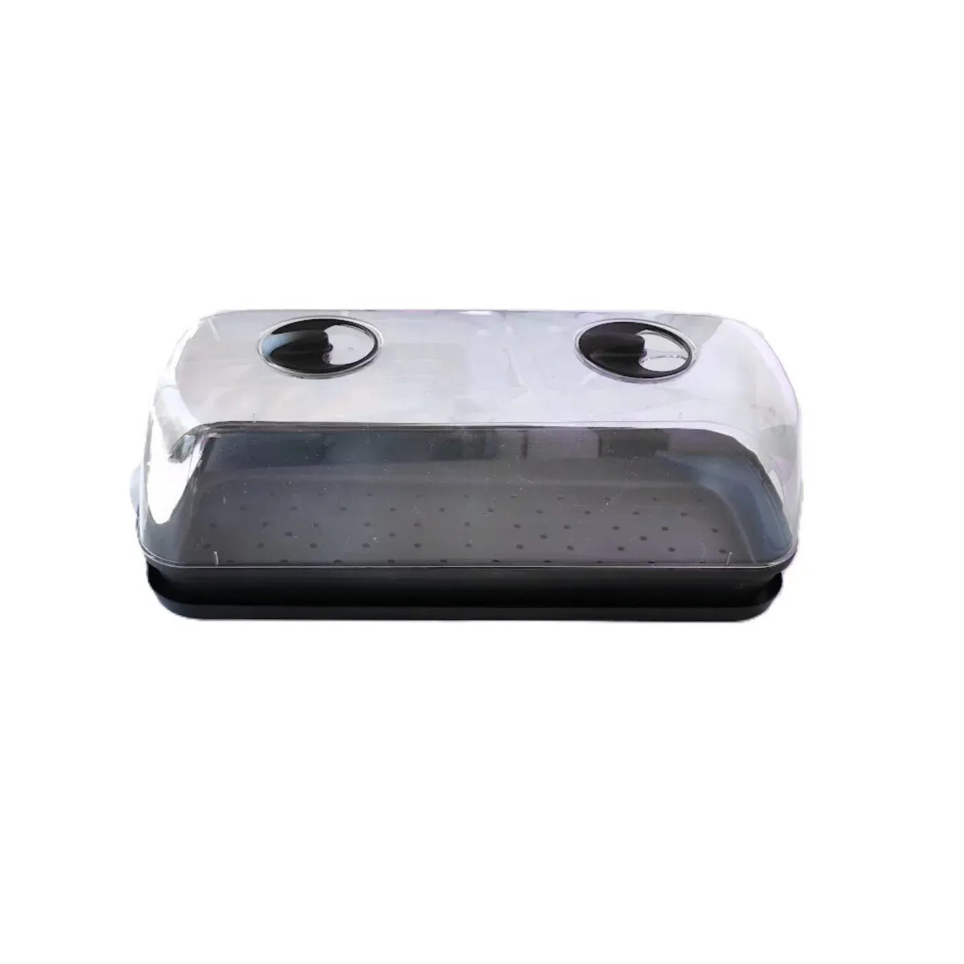 Černý plastový zahradní sadbovač je praktický a elegantní miniskleník vhodný pro předpěstování sazenic, bylinek nebo drobné zeleniny. Kombinuje plastový truhlík s průhledným víkem, které udržuje stabilní mikroklima a podporuje klíčení rostlin. Díky svému kompaktnímu tvaru je ideální na parapety, balkony i zahradní stoly.