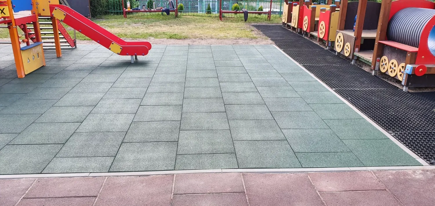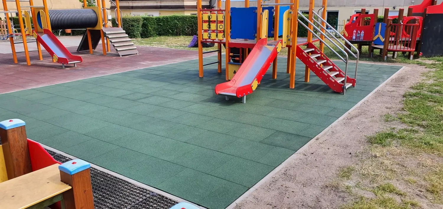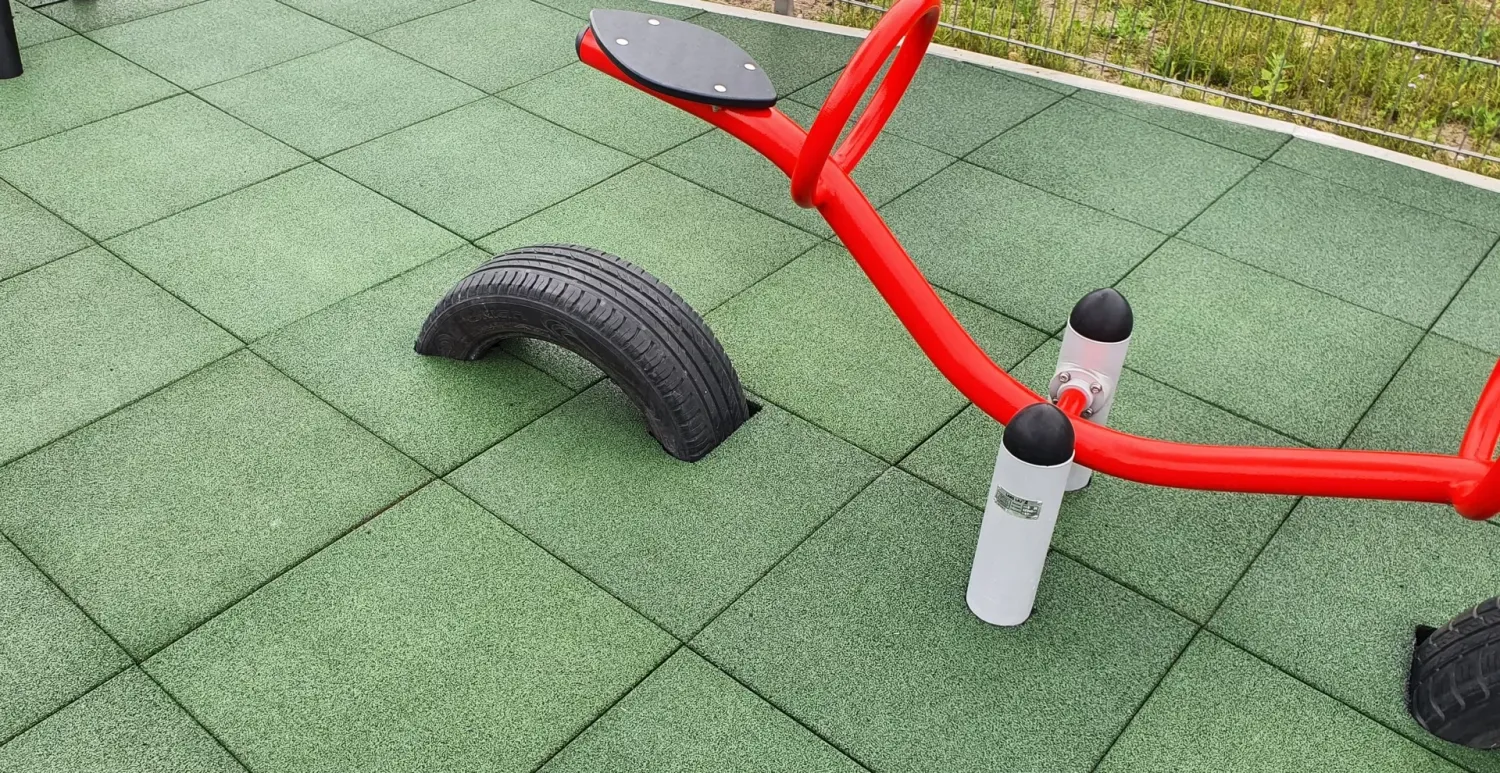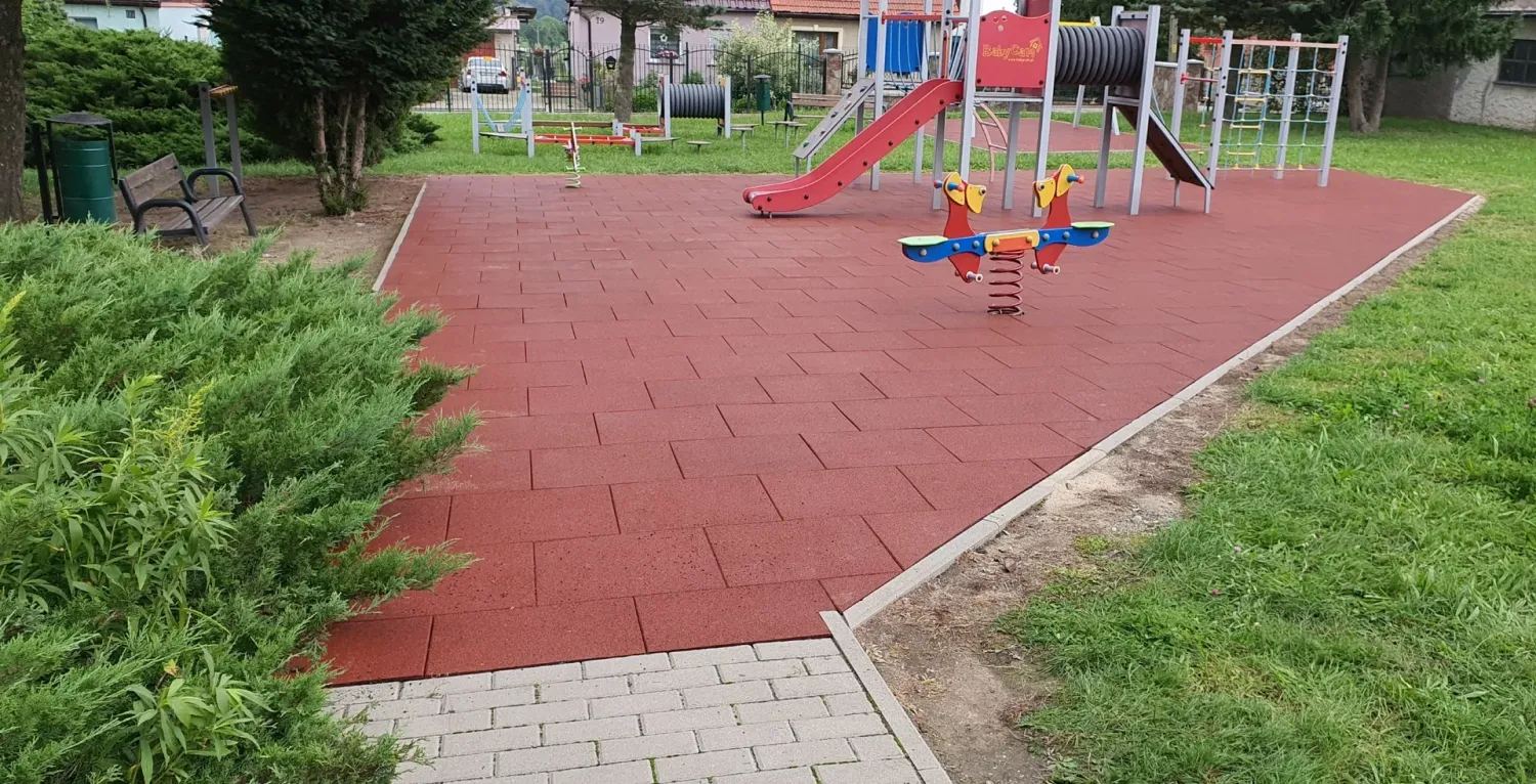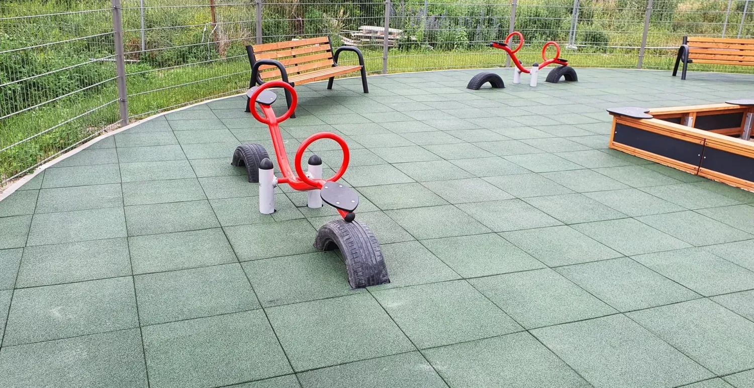 Gumová dlažba FLOMA ProF je ideální volbou, pokud potřebujete vytvořit bezpečný povrch pro dětská hřiště či venkovní posilovny, který odolává vnějším vlivům a mechanickému poškození, přičemž zůstává měkký a bezpečný při pádu.