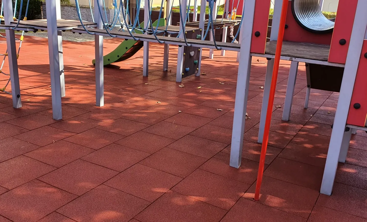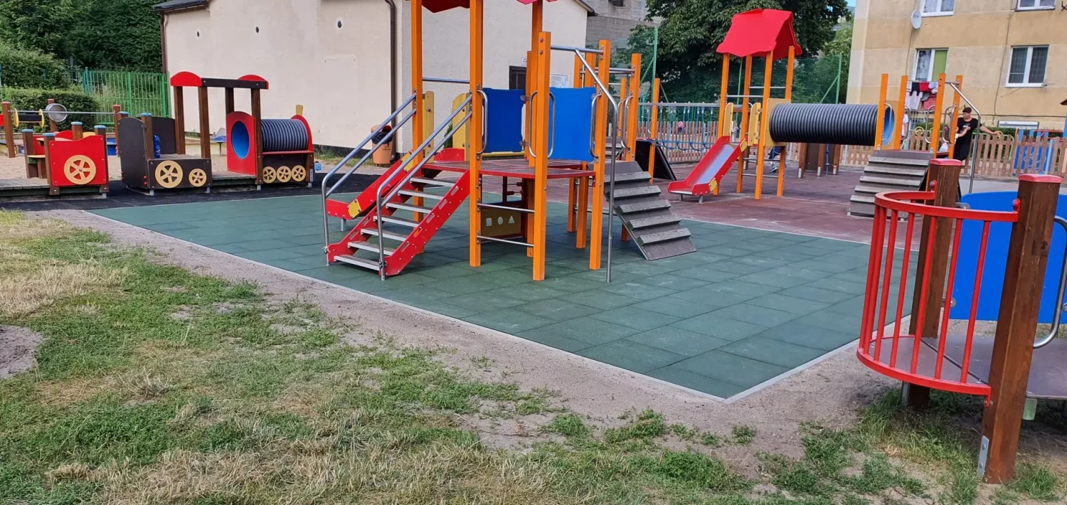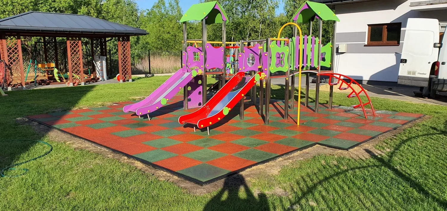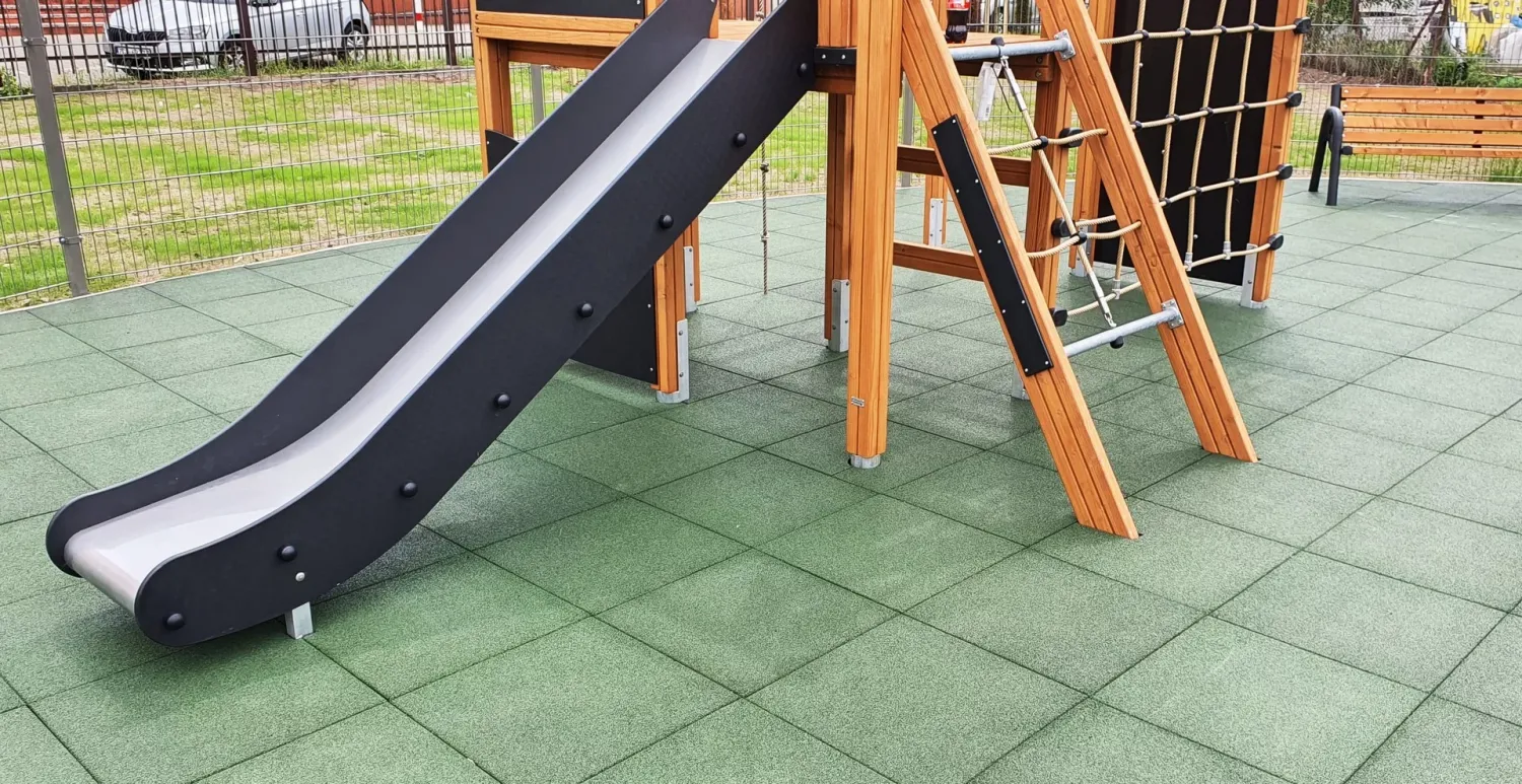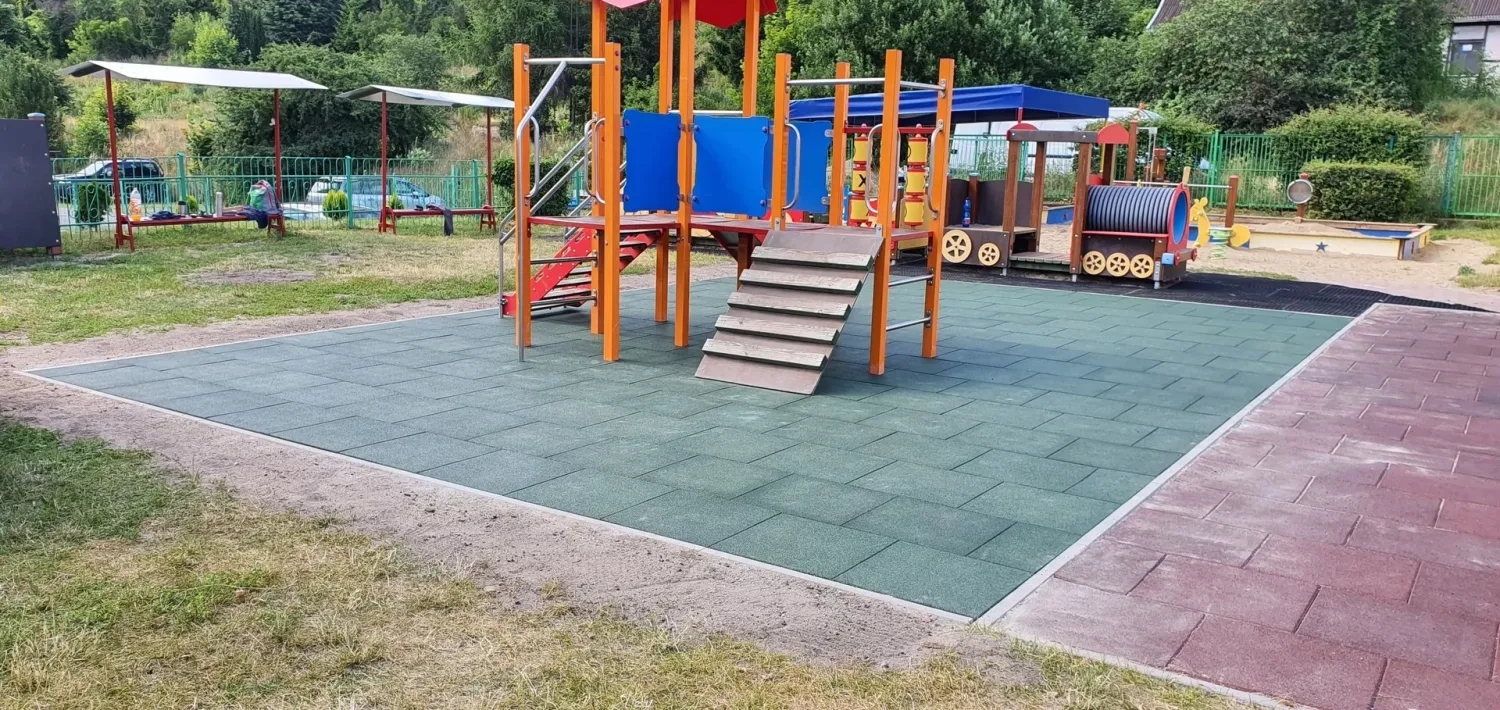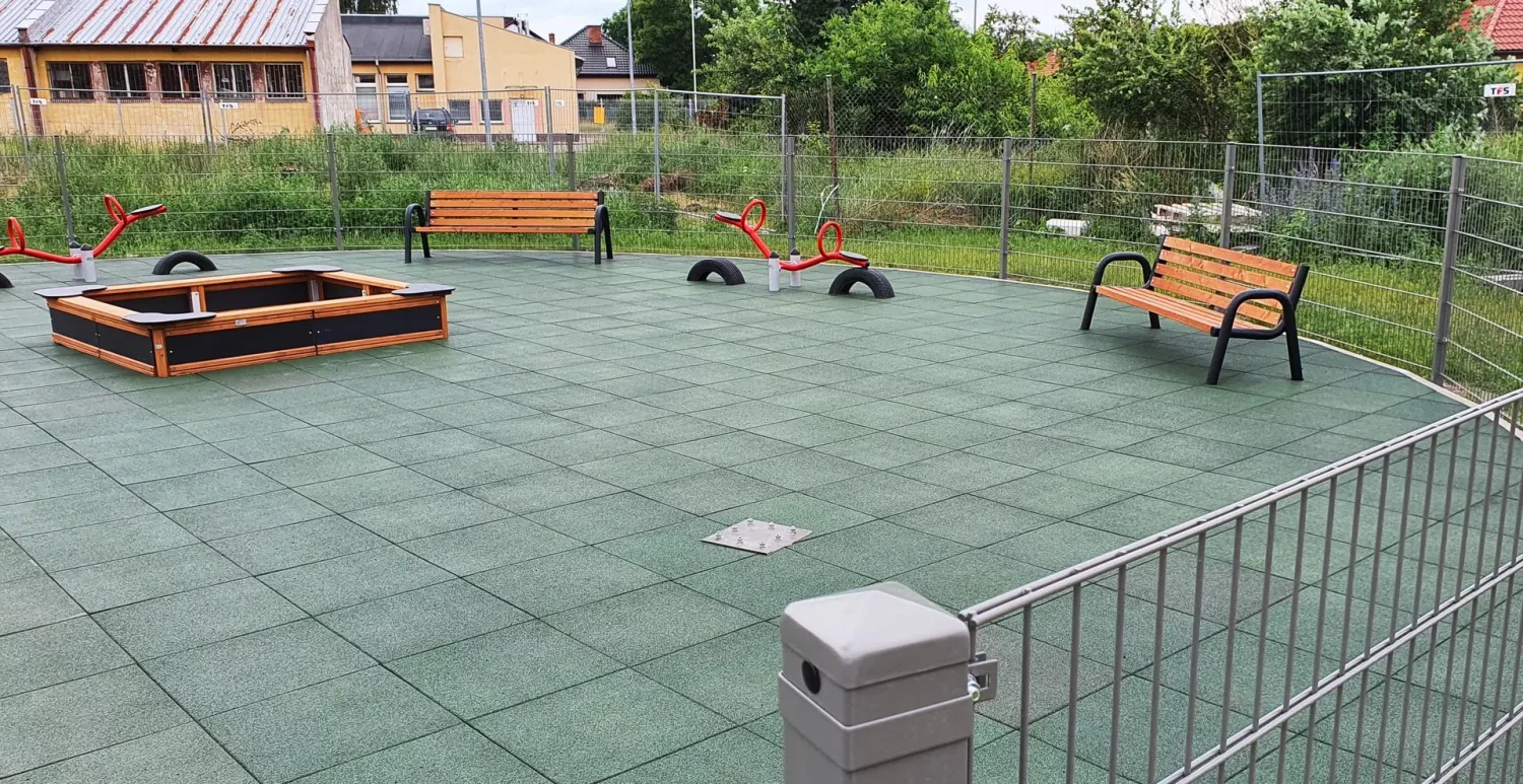 Gumová dlažba FLOMA ProF je ideální volbou, pokud potřebujete vytvořit bezpečný povrch pro dětská hřiště či venkovní posilovny, který odolává vnějším vlivům a mechanickému poškození, přičemž zůstává měkký a bezpečný při pádu.