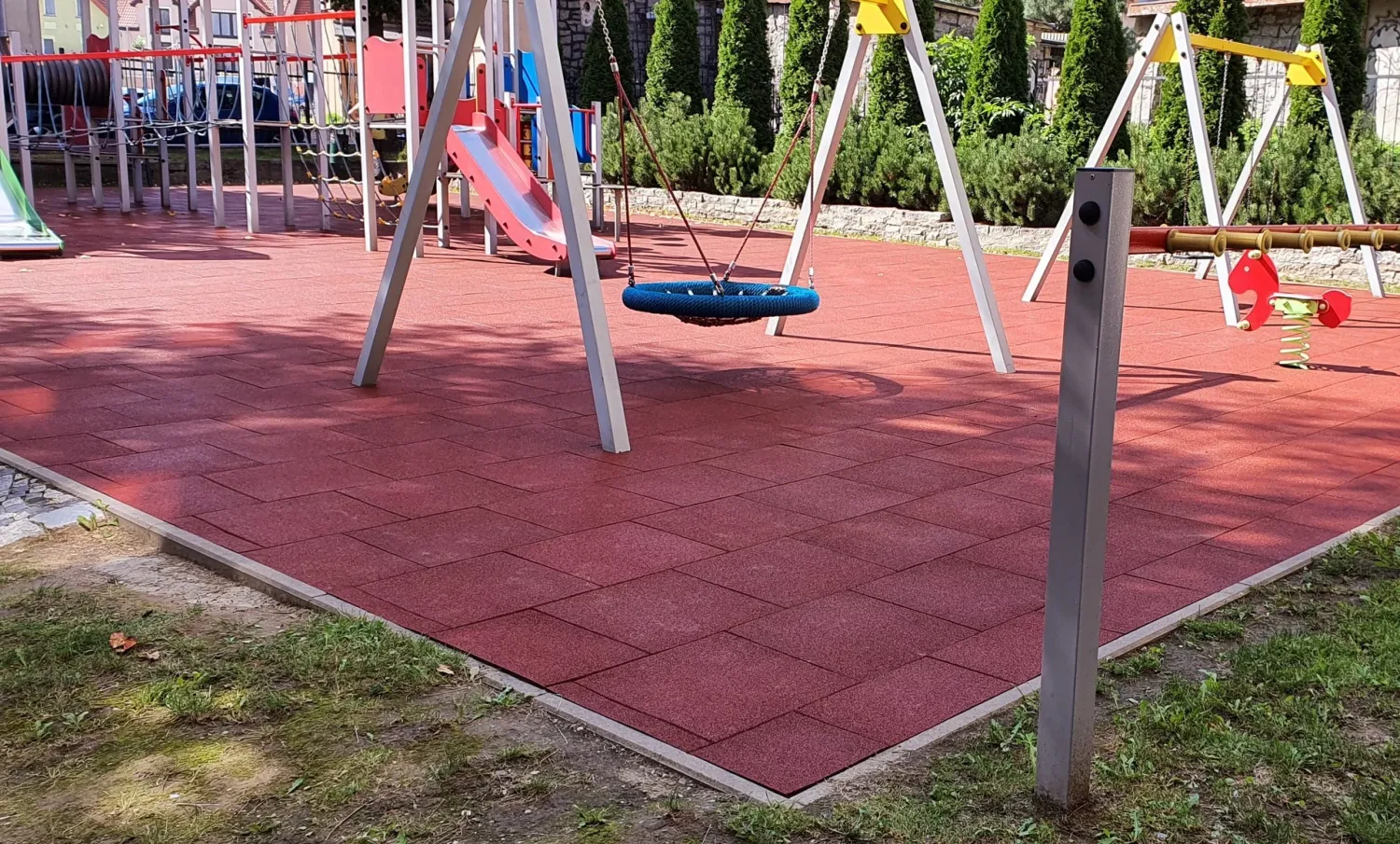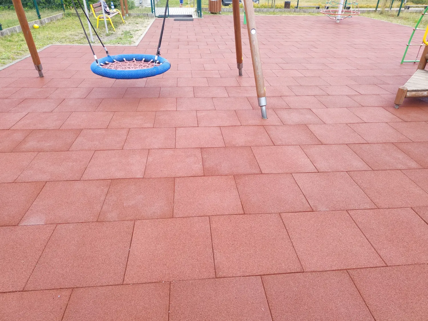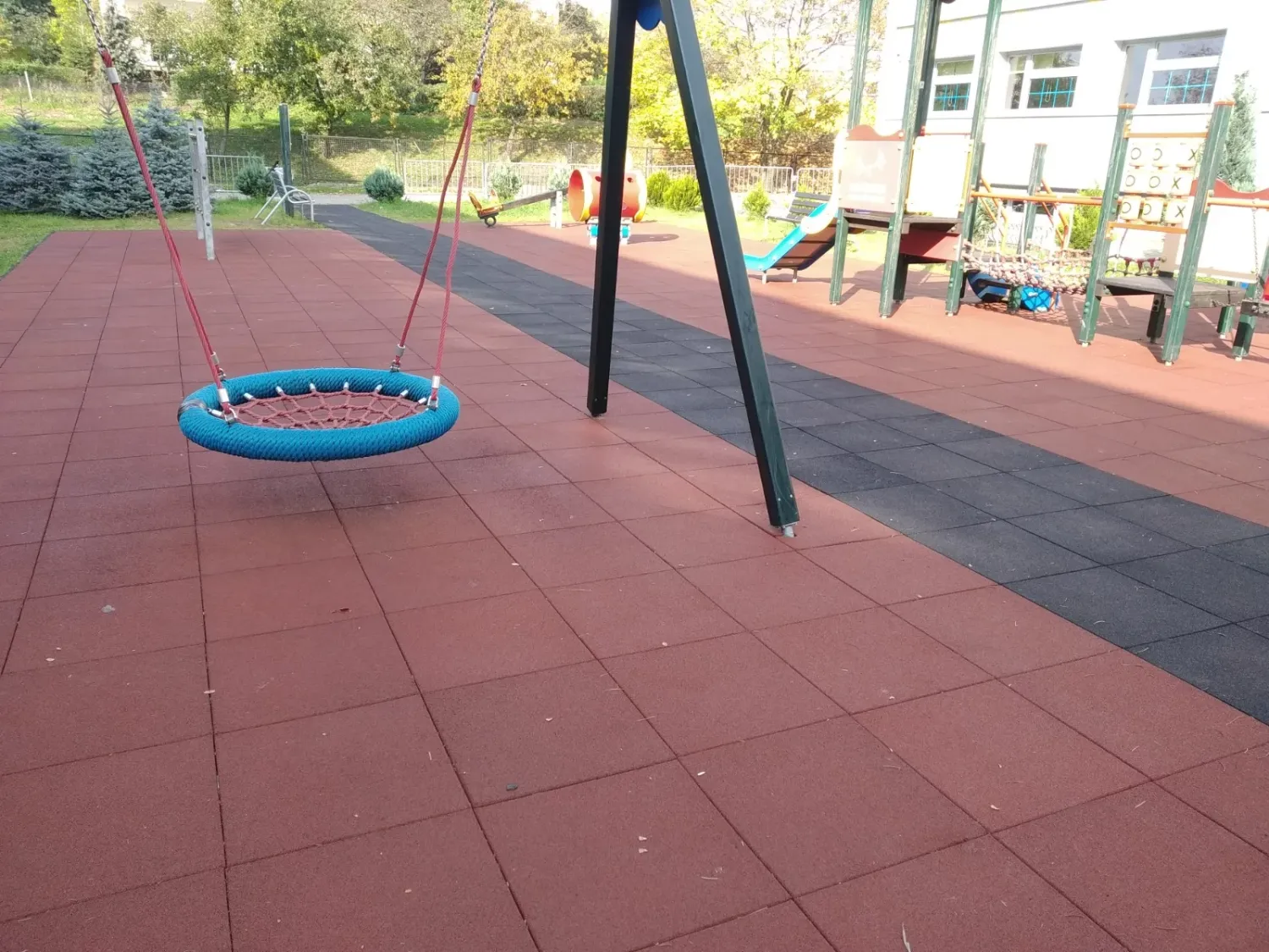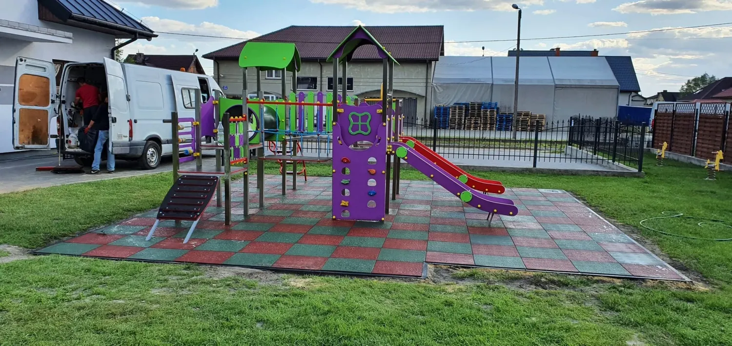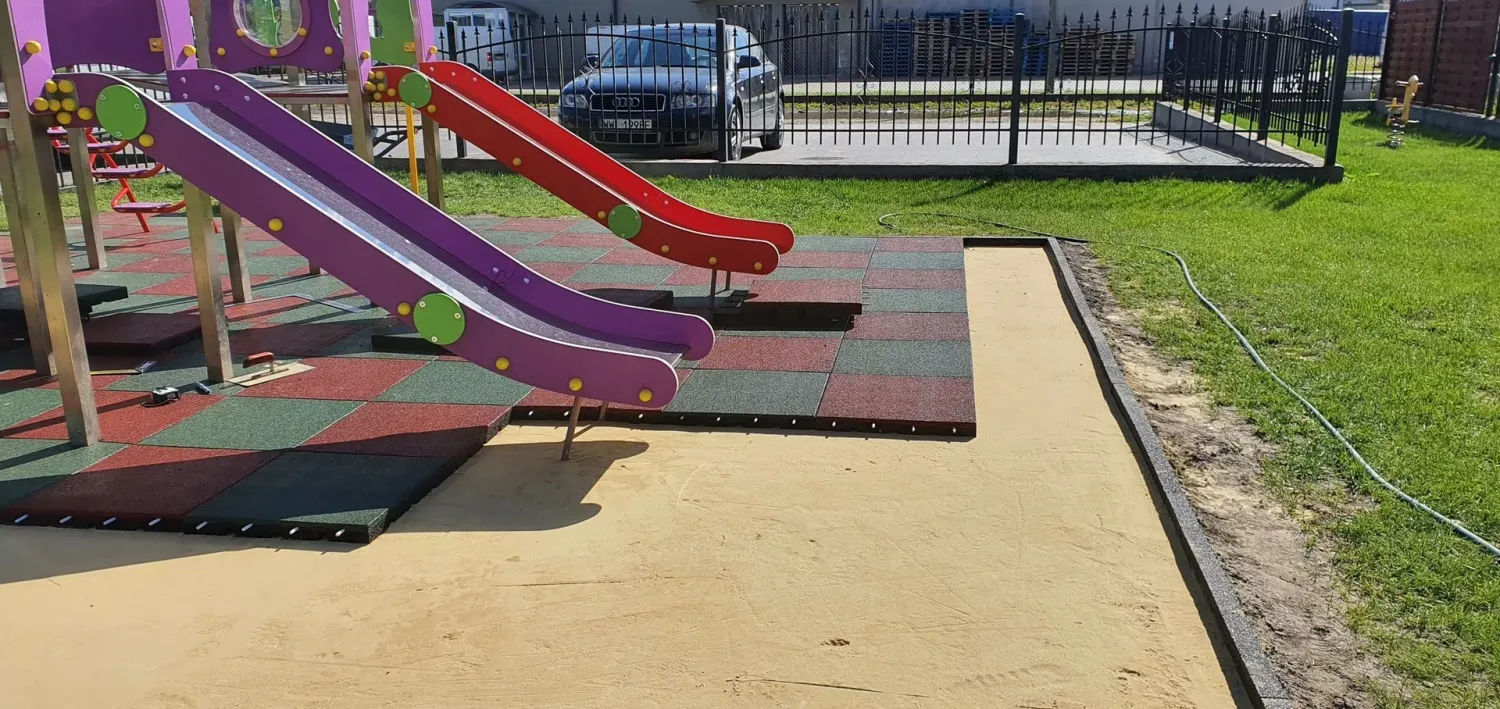 Gumová dlažba FLOMA ProF je ideální volbou, pokud potřebujete vytvořit bezpečný povrch pro dětská hřiště či venkovní posilovny, který odolává vnějším vlivům a mechanickému poškození, přičemž zůstává měkký a bezpečný při pádu.